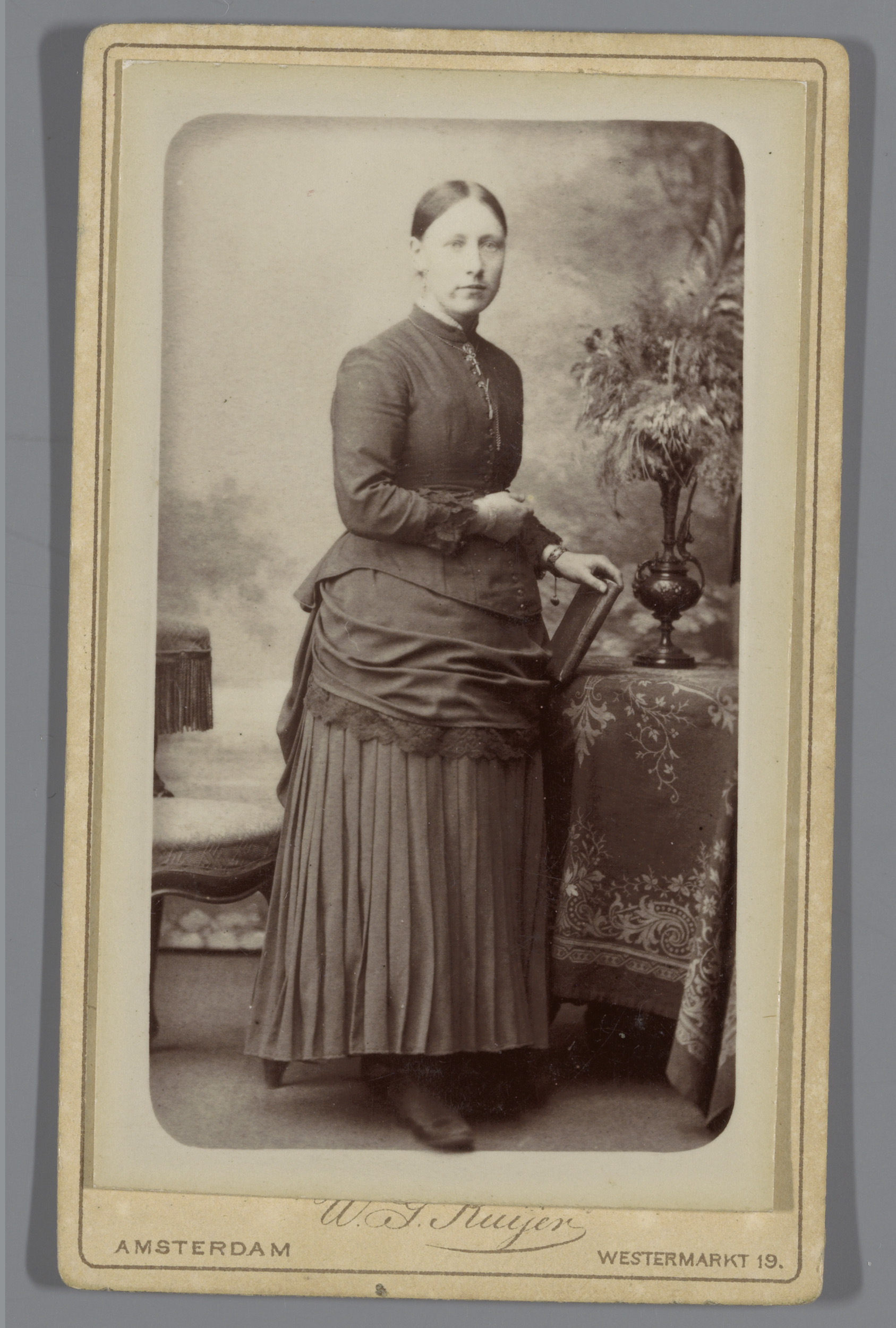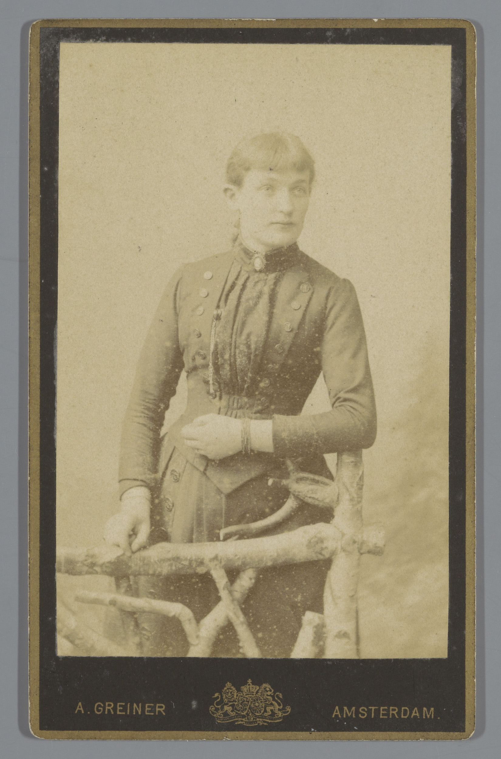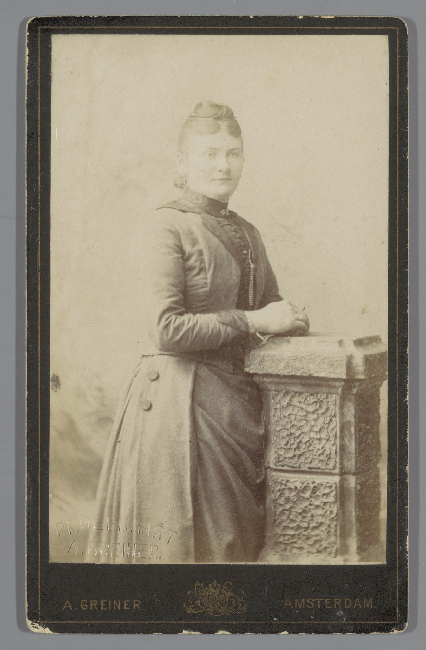 Portret van een onbekende vrouw, staande naast een s...