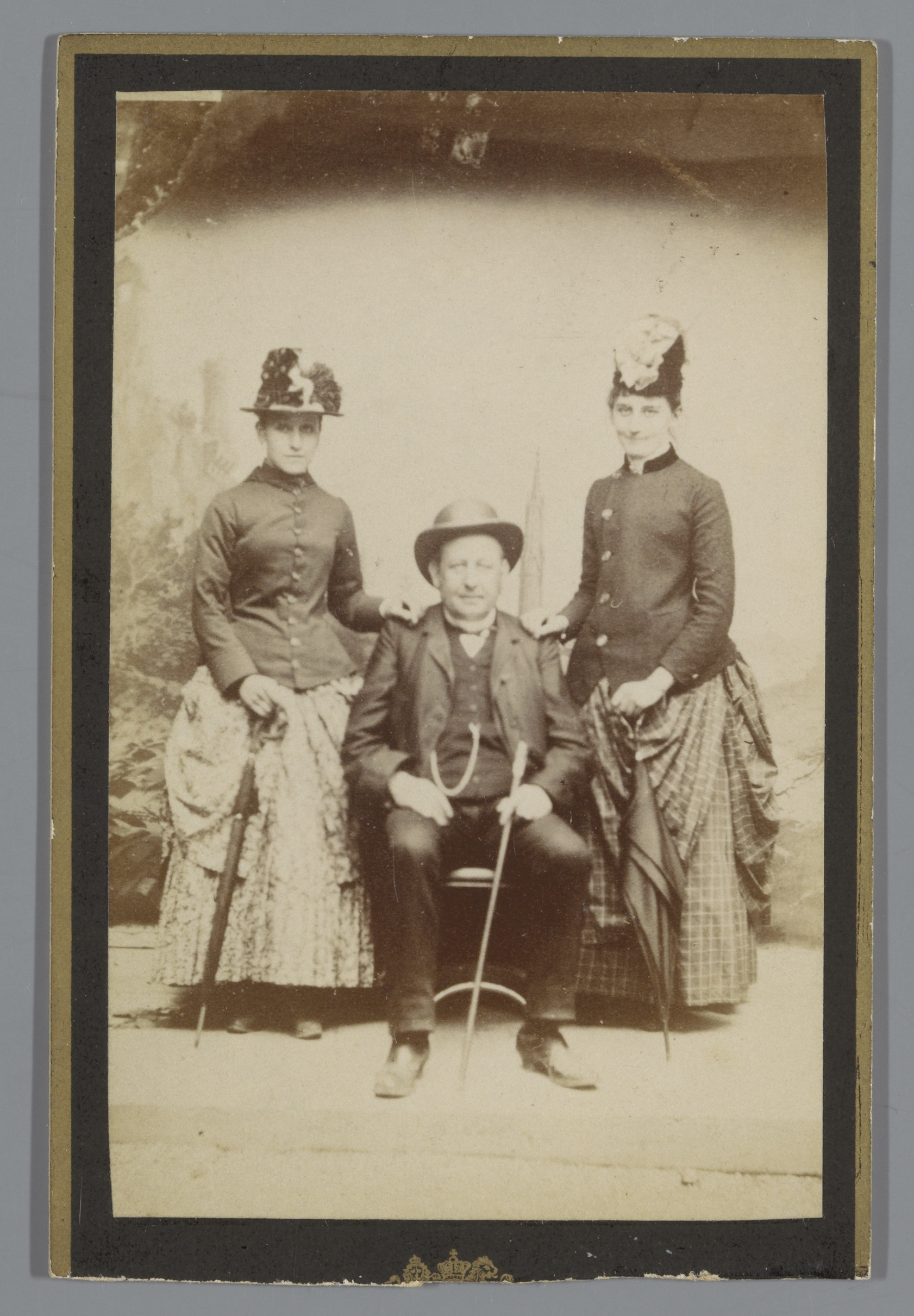 Groepsportret van twee onbekende vrouwen en een onbe...