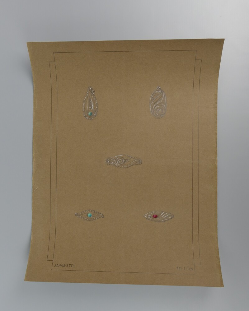 Tekeningen op bruin papier voorstellende ontwerpen d...