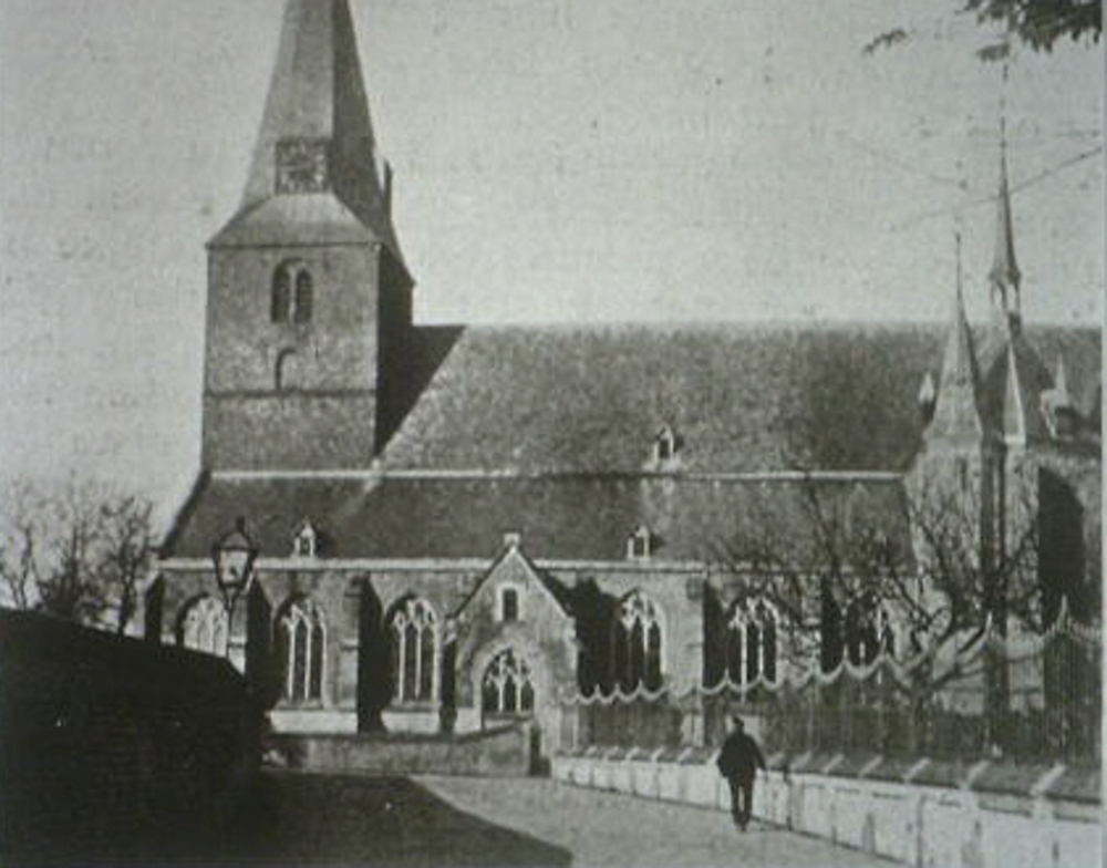 Gezicht op Rk kerk vanaf zuideinde van de Langekerks...