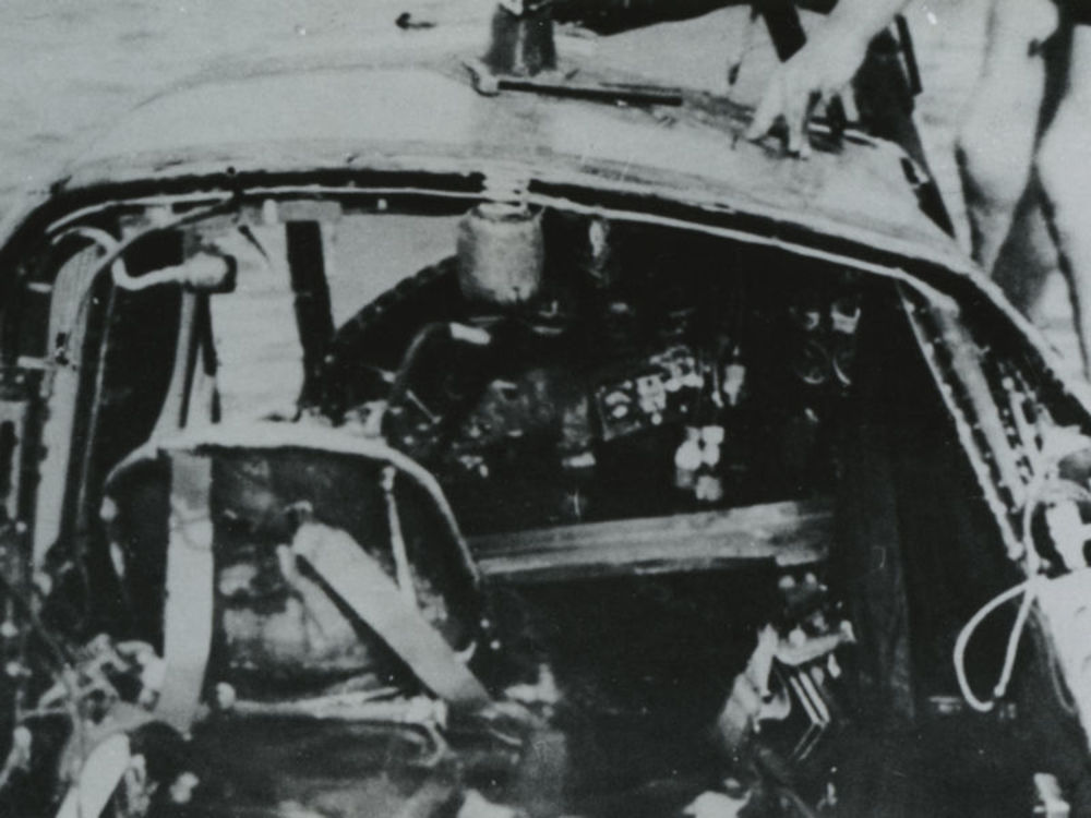 Foto wrak Dornier 215. Cockpit zichtbaar. Tekst: "Re...