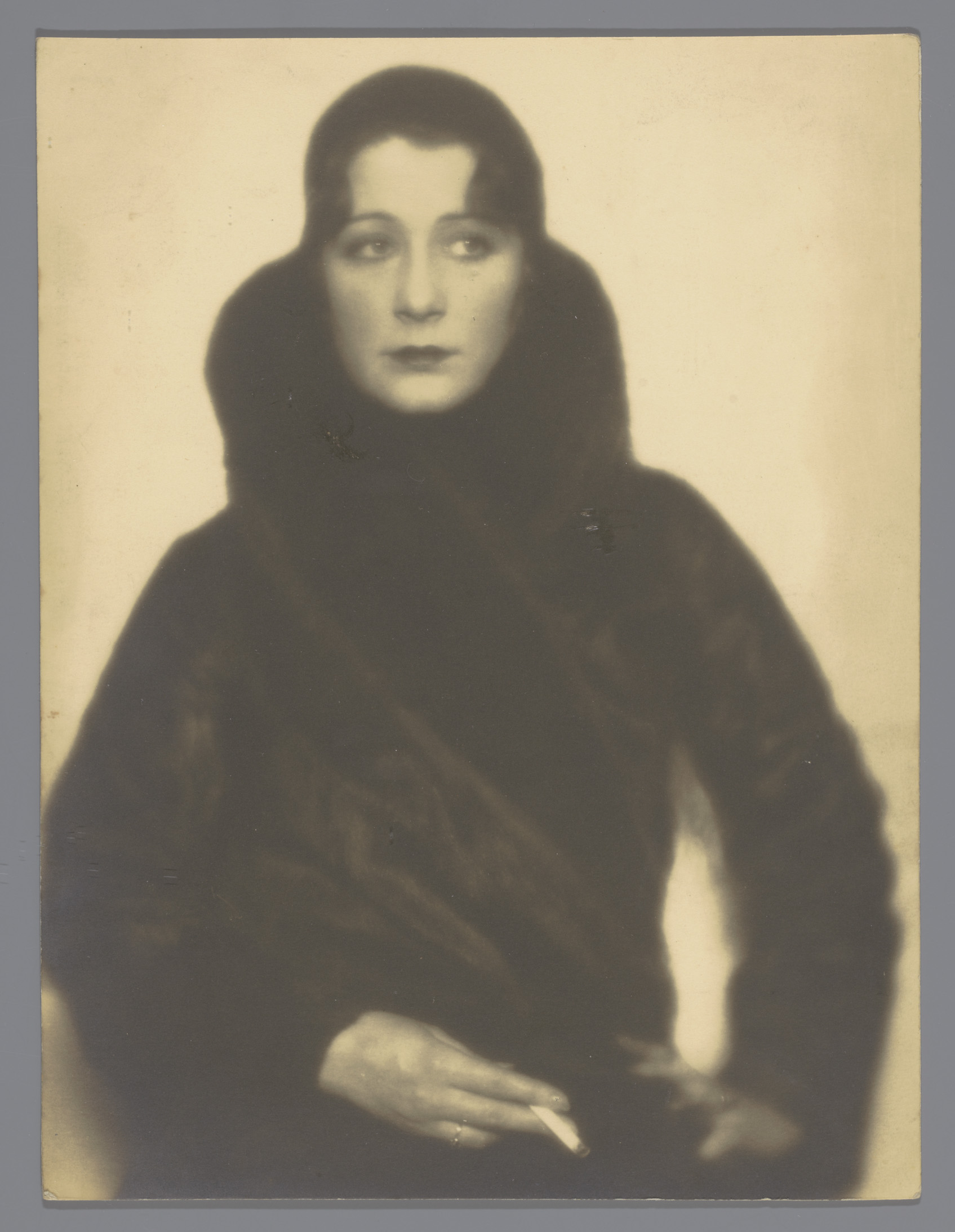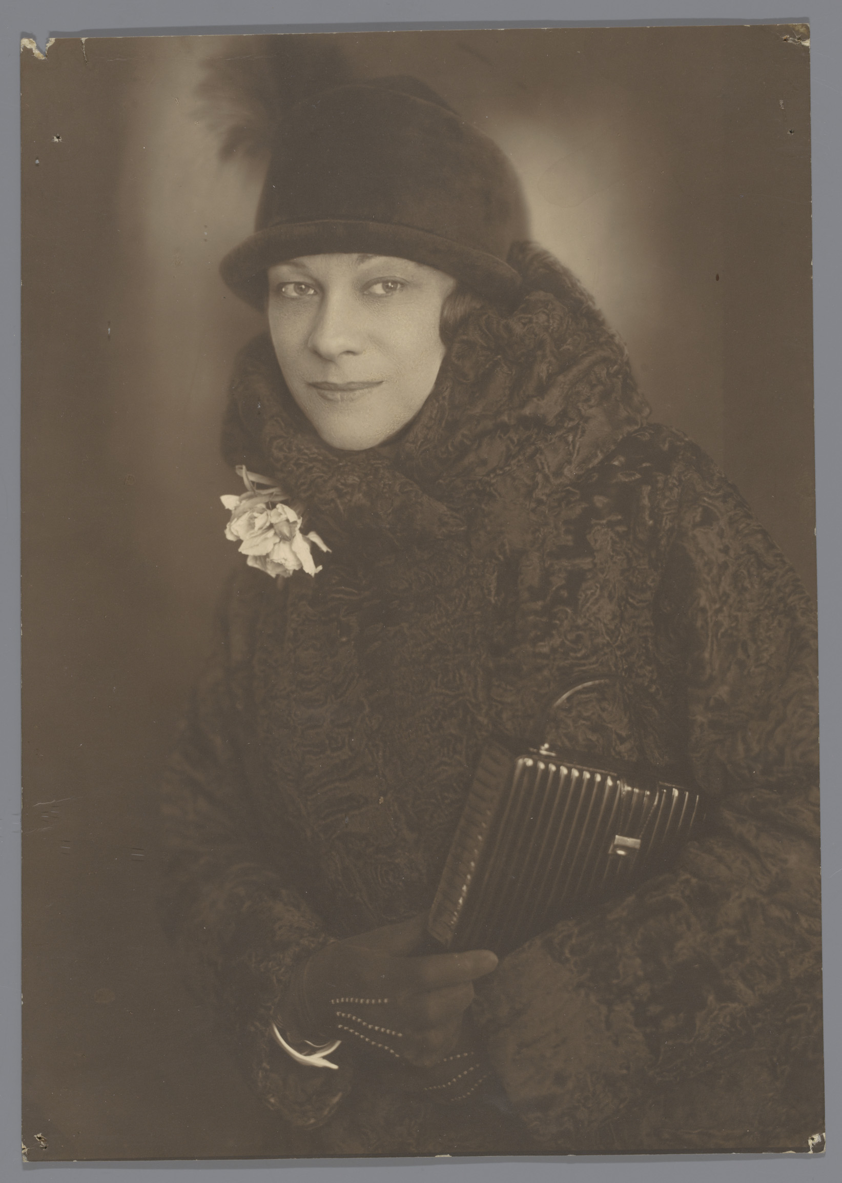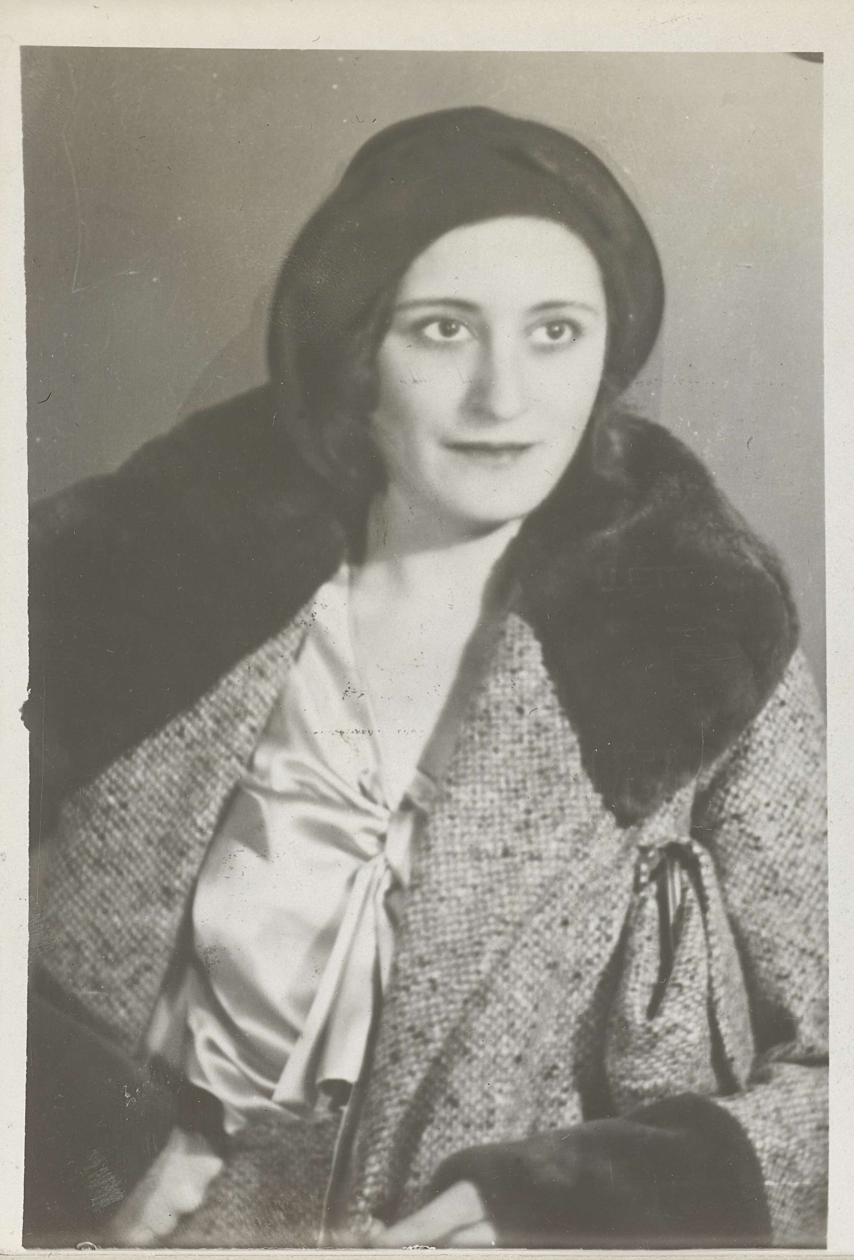 Portret van Roly Bock, in bontjas met sigaret