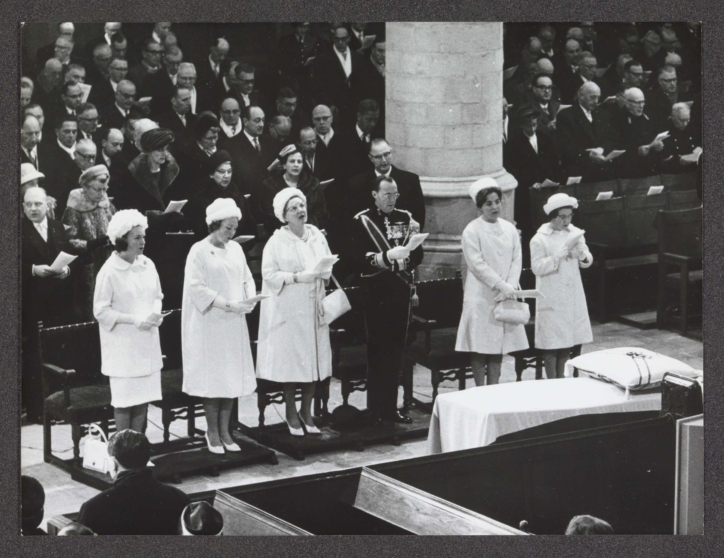 Koninklijke familie zingt in kerk tijdens de begrafe...