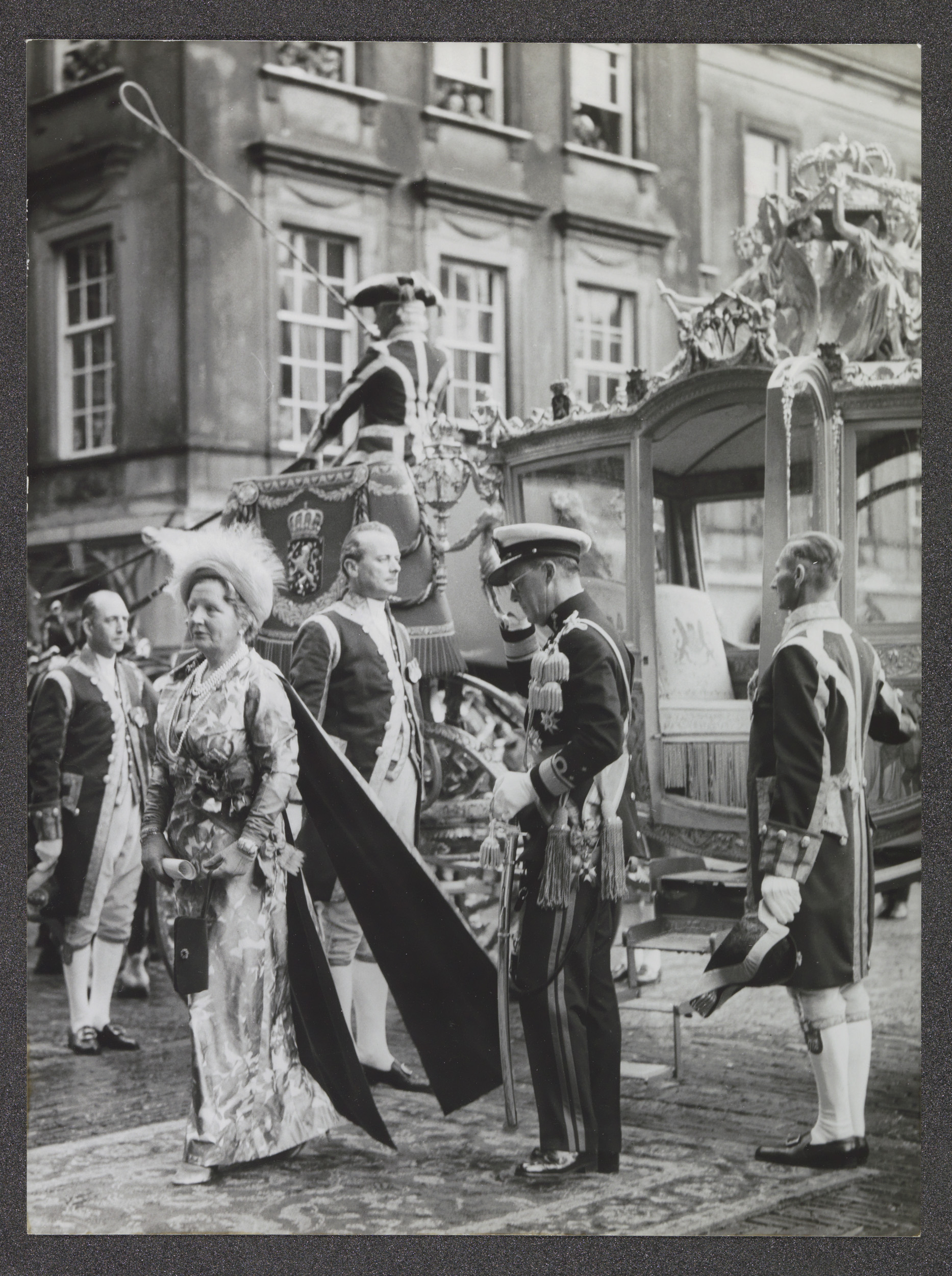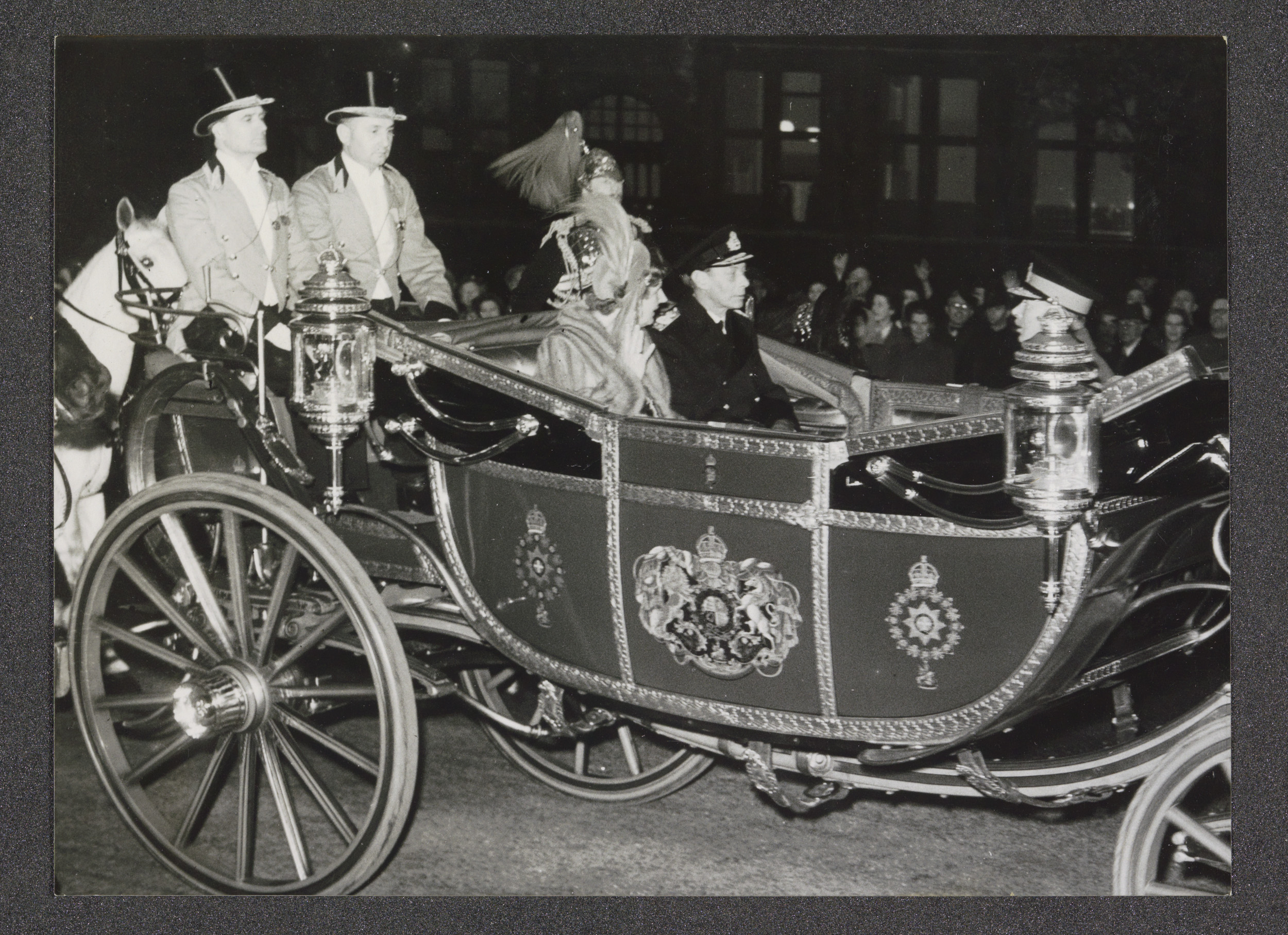 Koningin Juliana en Koning George VI in een rijtuig