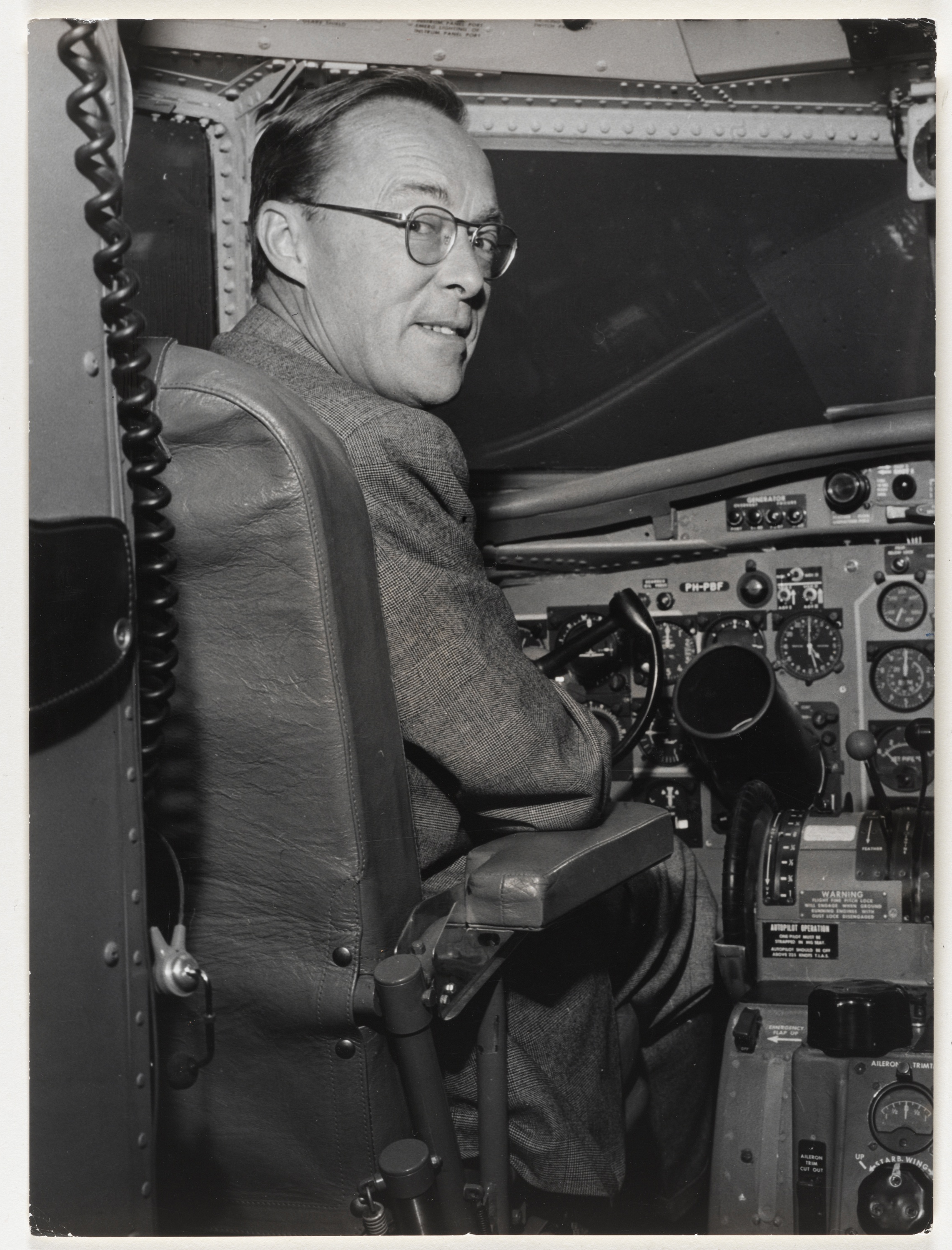 Prins Bernhard als piloot in zijn nieuwe Fokker Frie...