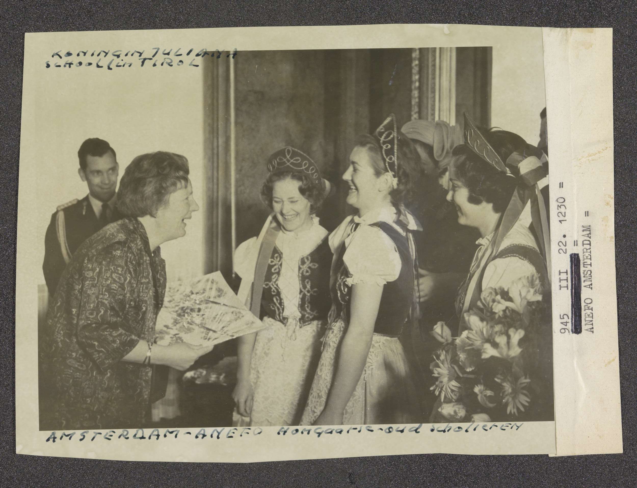 Koningin Juliana op bezoek op een school in Tirol