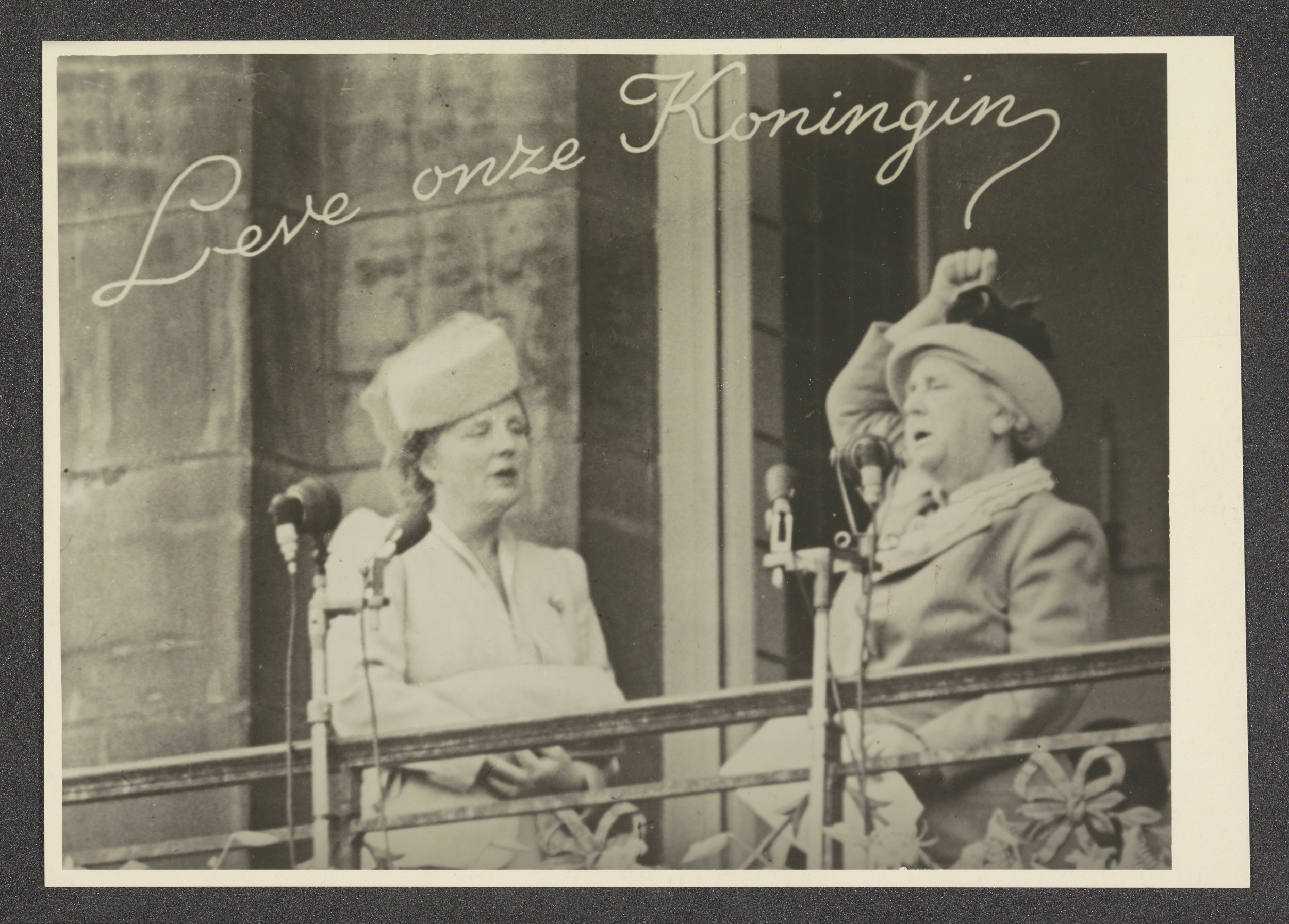 Koningin Juliana en prinses Wilhelmina op het balkon...