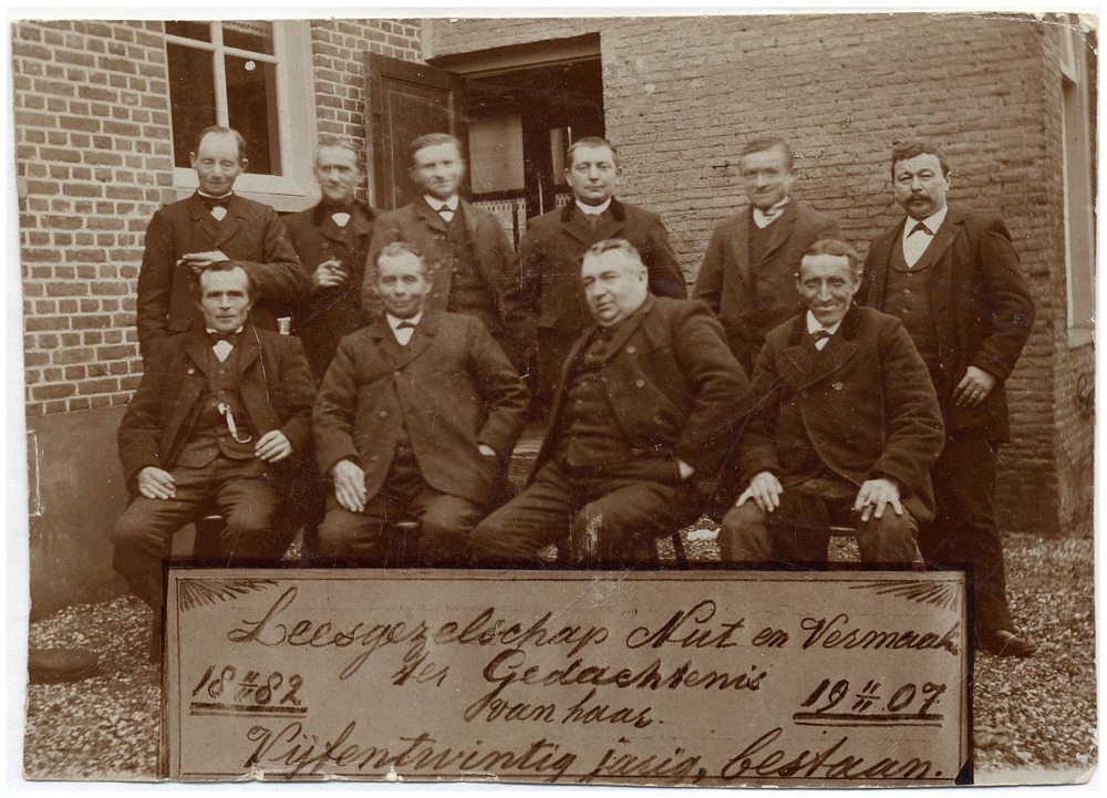 Leden van leesgezelschap Nut en Vermaak bij hun 25- ...