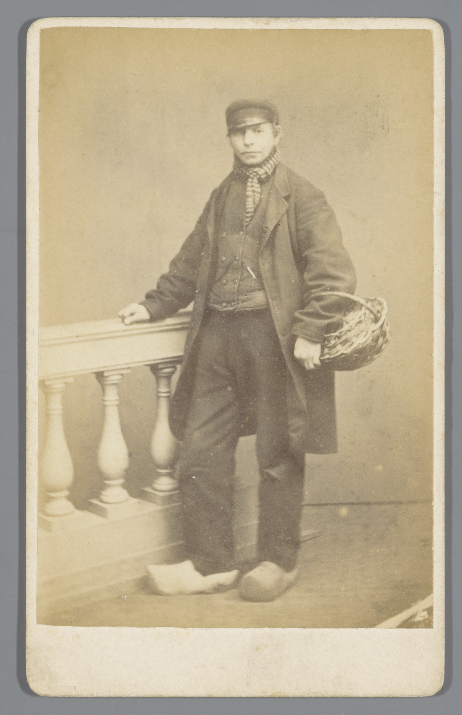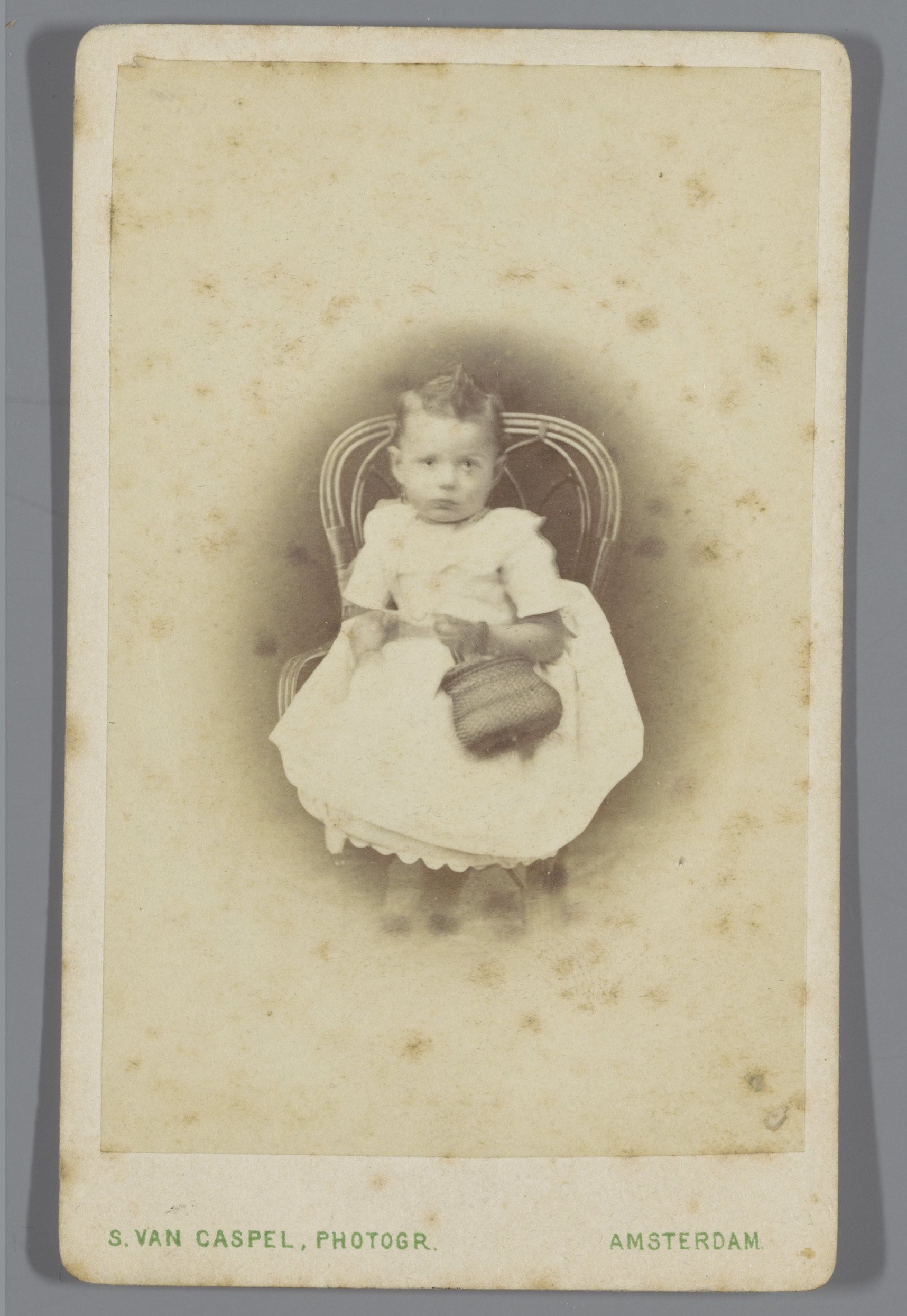 Portret van een onbekend kind met een kleine mand in...