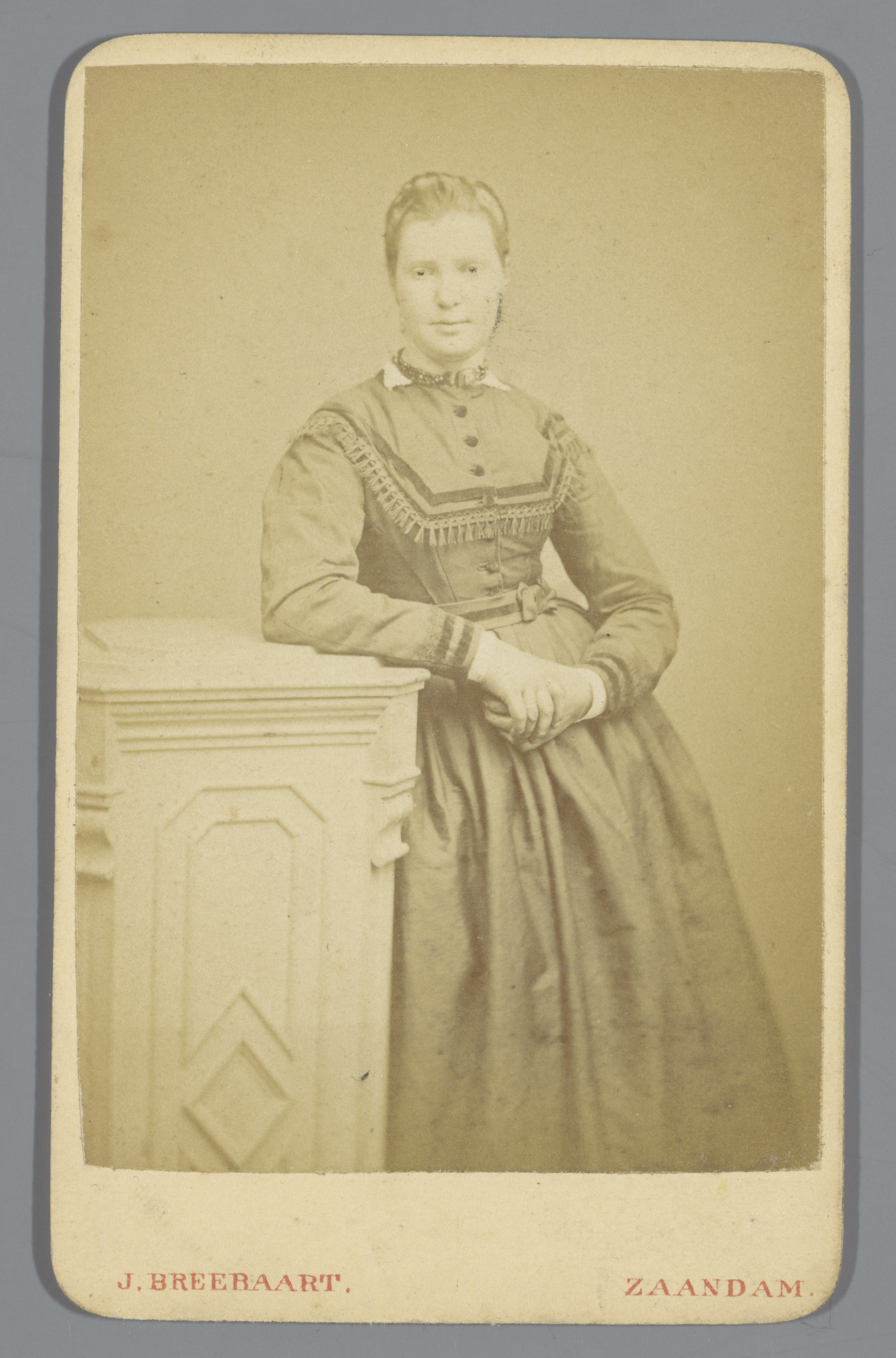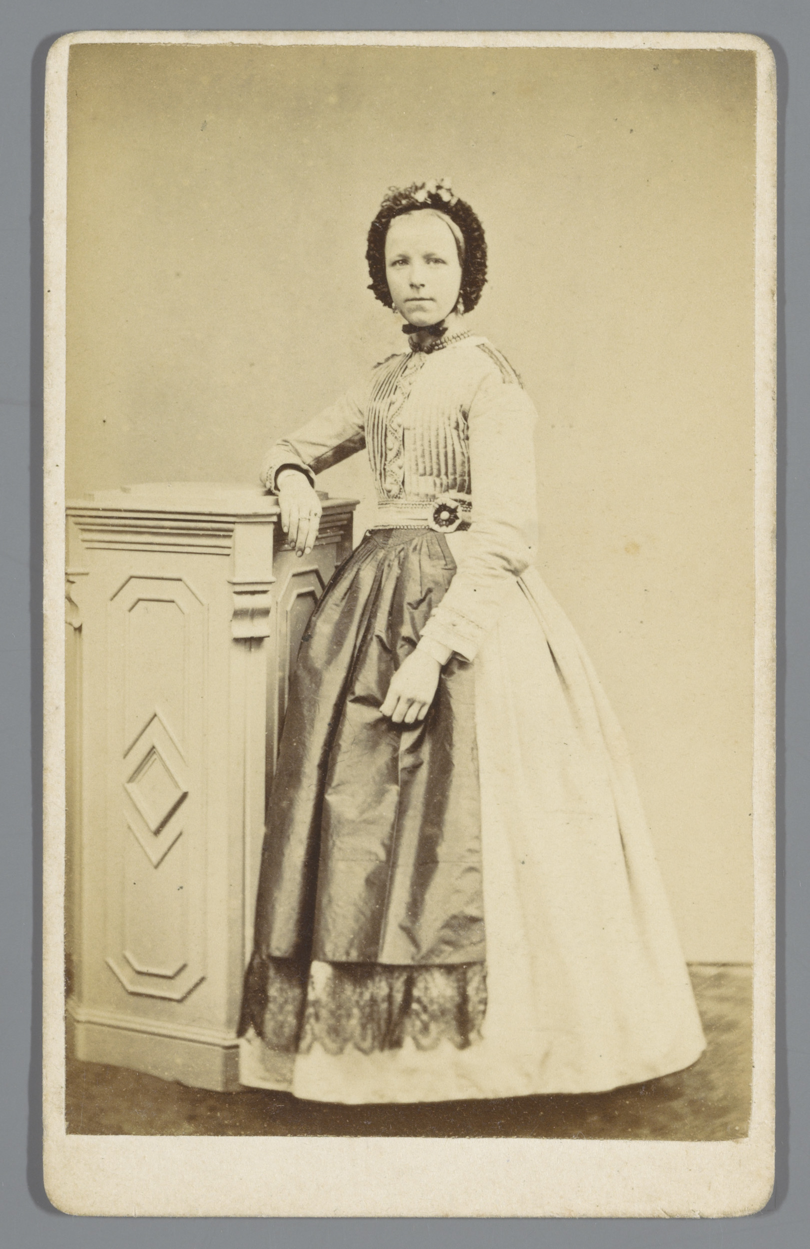 Portret van een onbekende vrouw, staande naast een s...