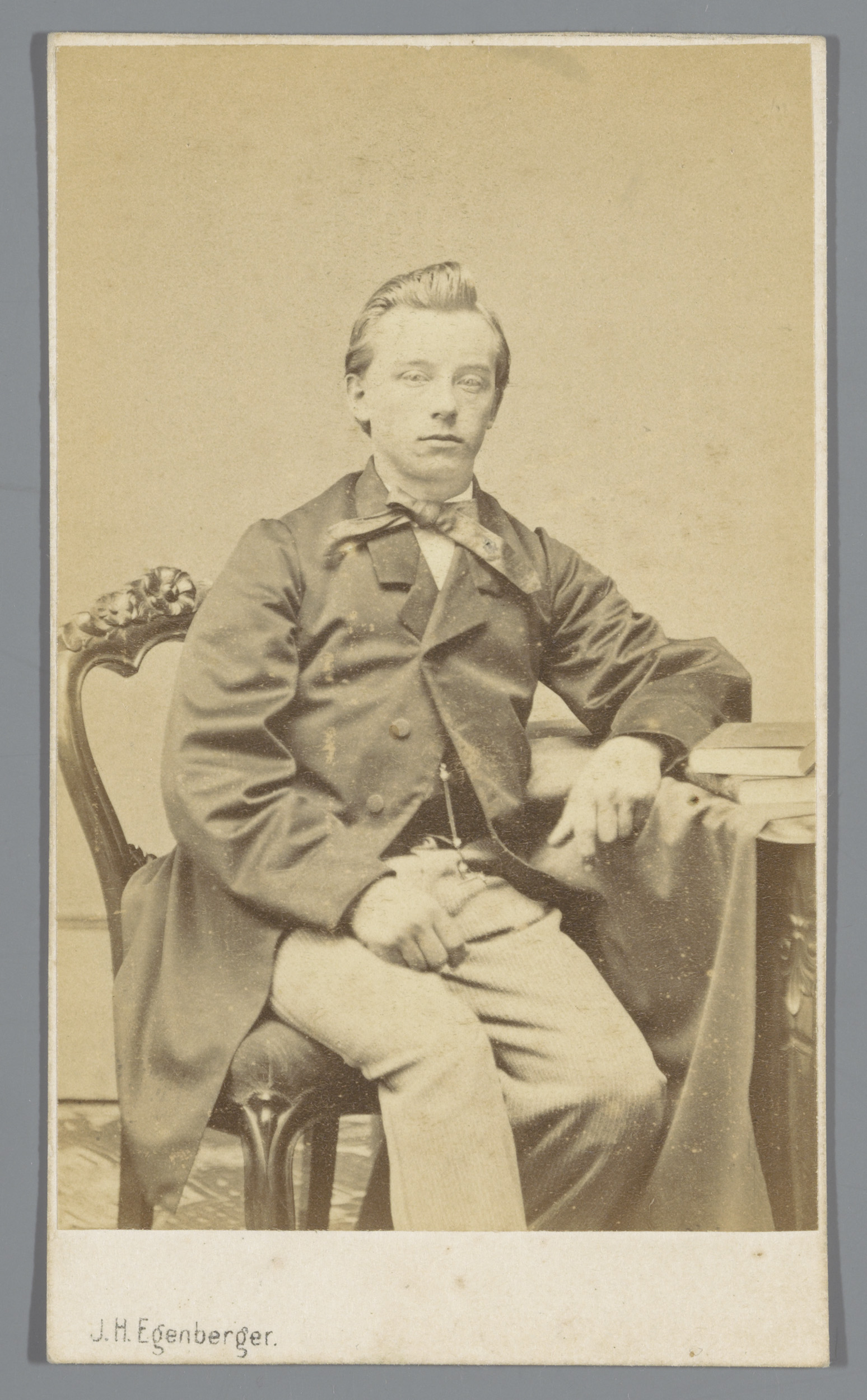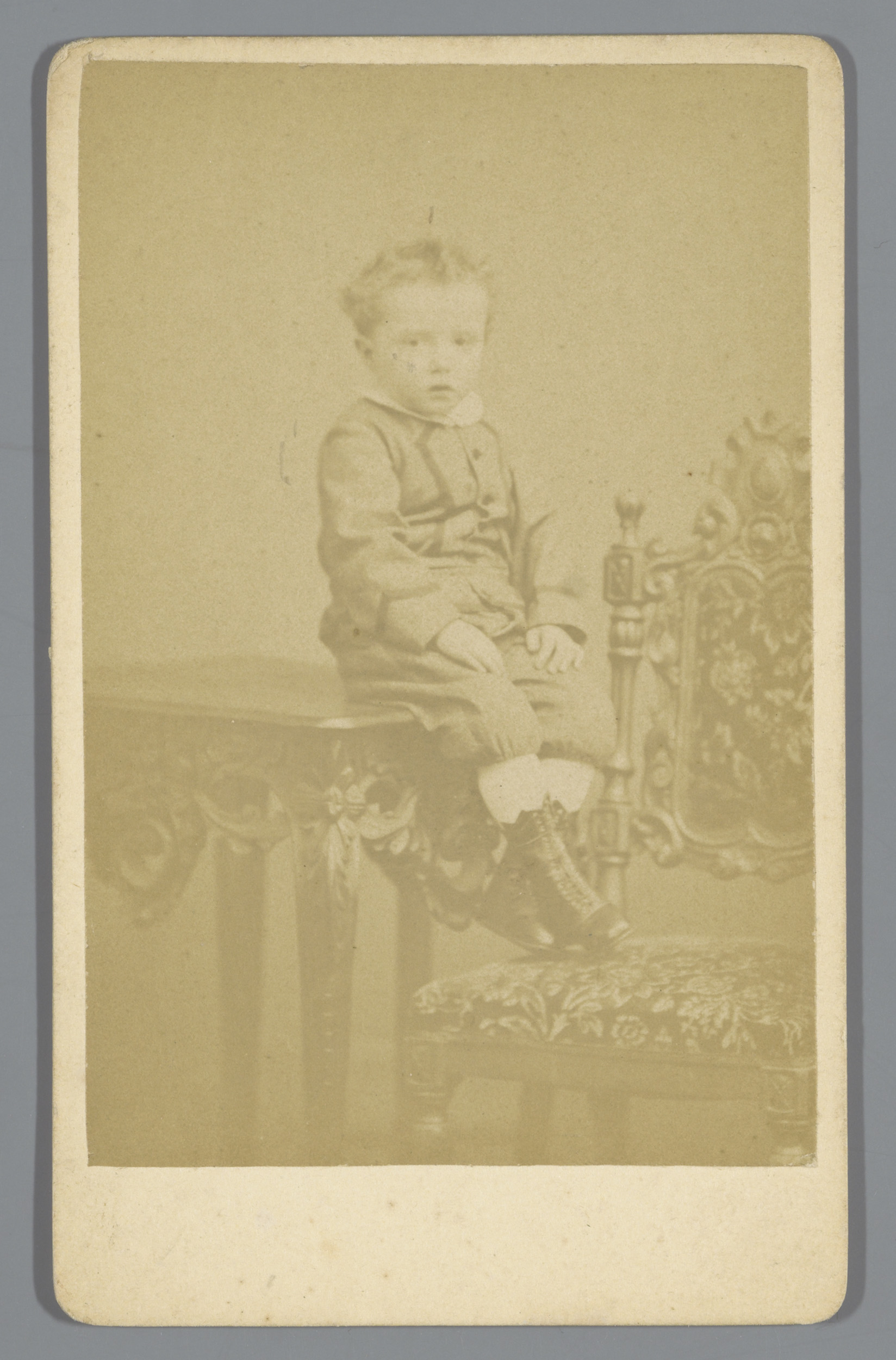 Portret van een onbekende jongen, zittend op een tafel