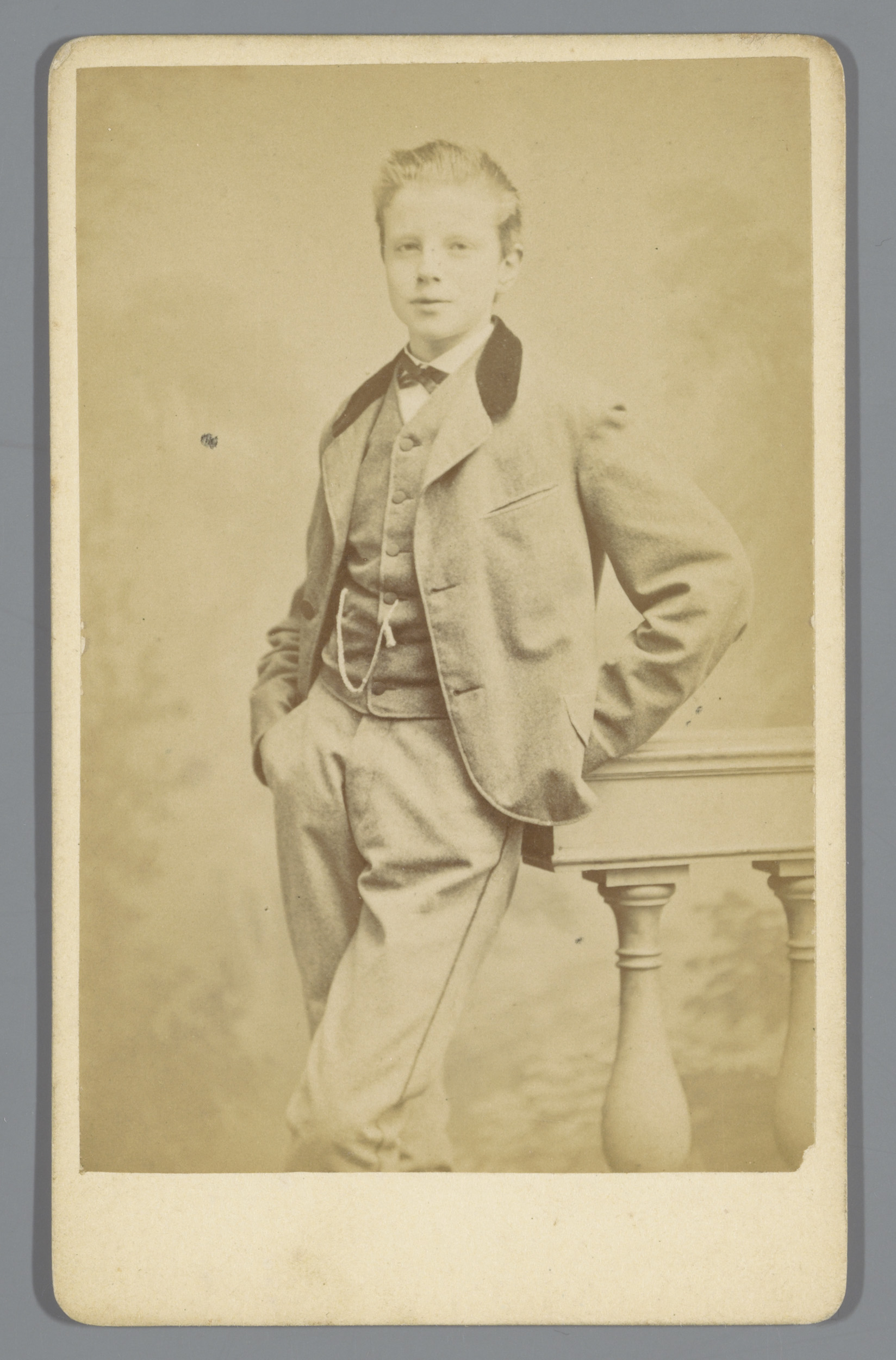 Portret van een onbekende jongen, staande naast een ...