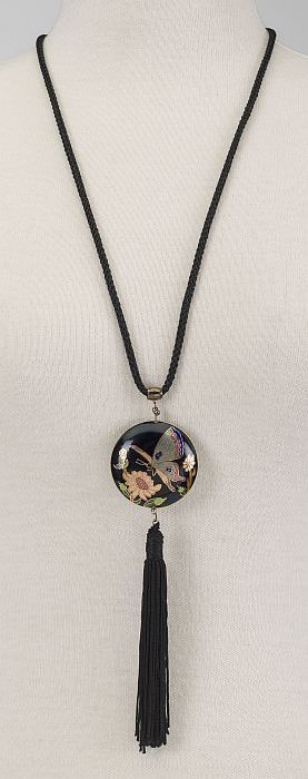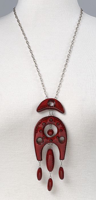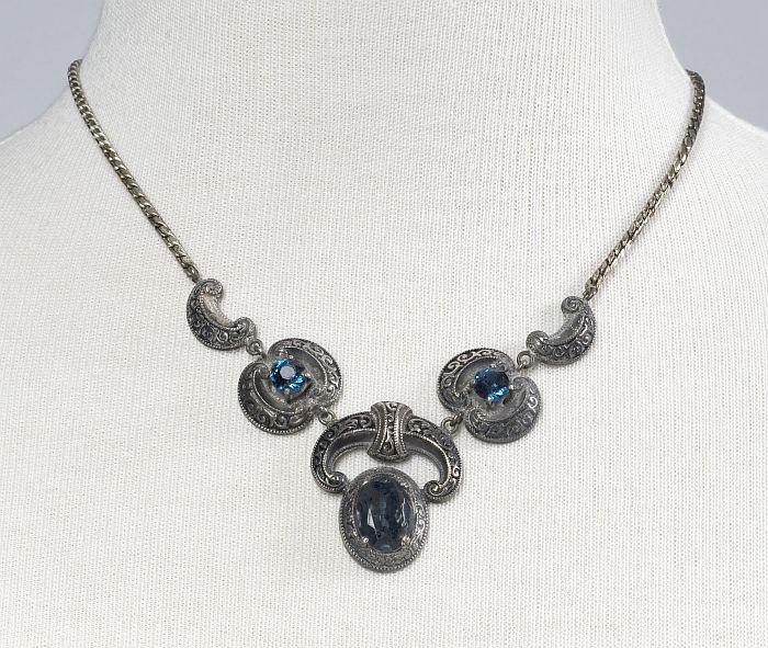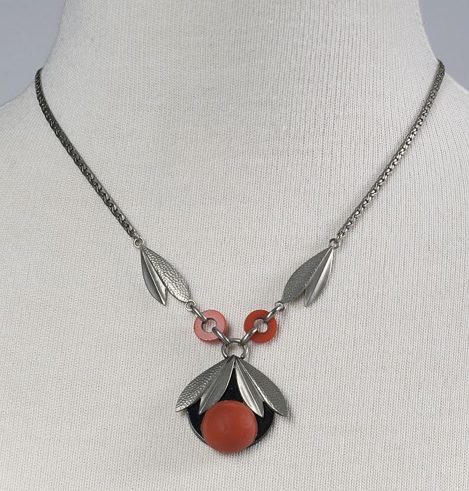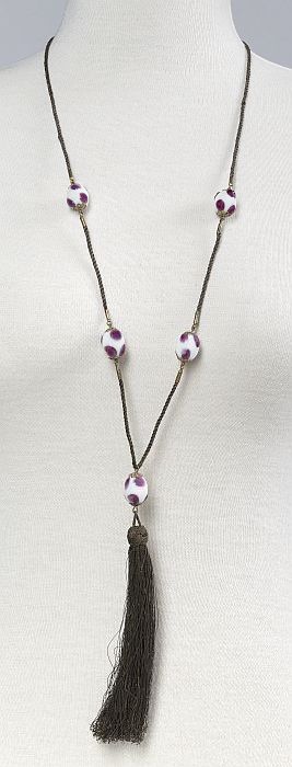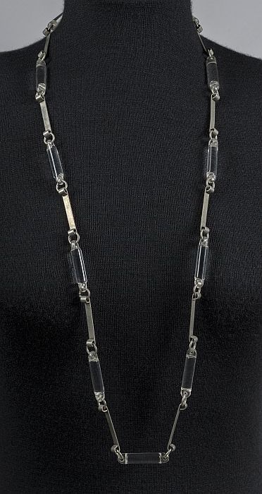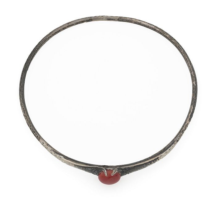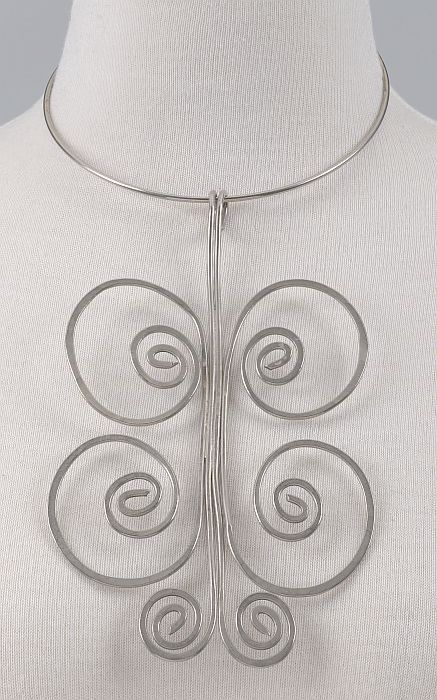 Halssnoer van gevlochten metaaldraad met vijf eivorm...
