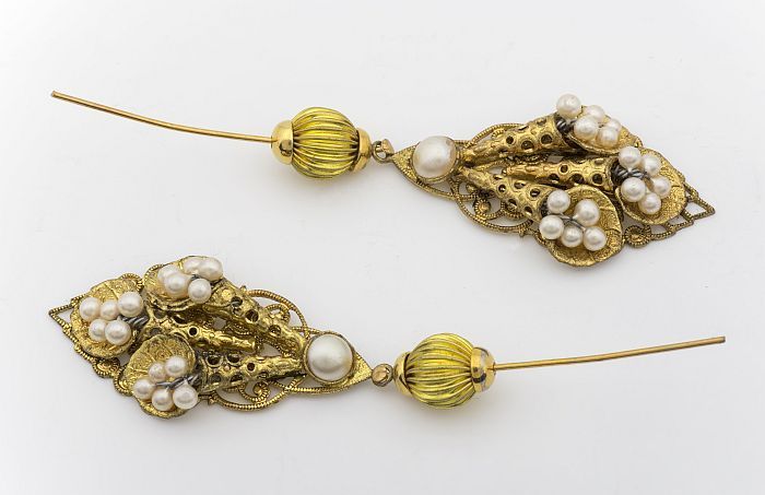 Goudkleurige metalen oorbellen met kleine pareltjes