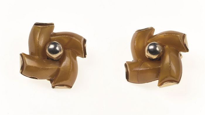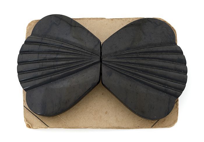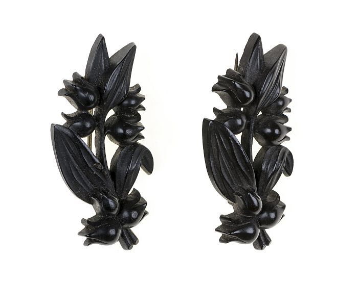 Twee identieke houten broches, lelietjes-van-dalen