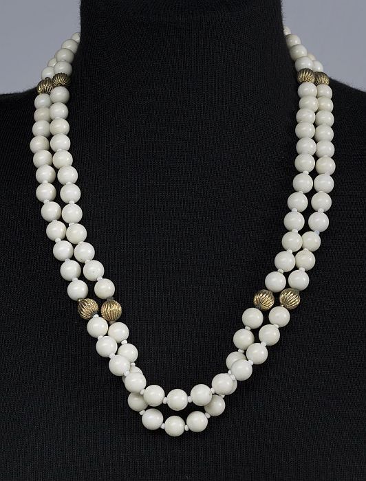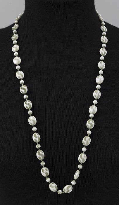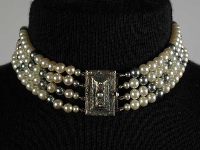 Kralensnoer bestaande uit vier rijen witte en grijze...