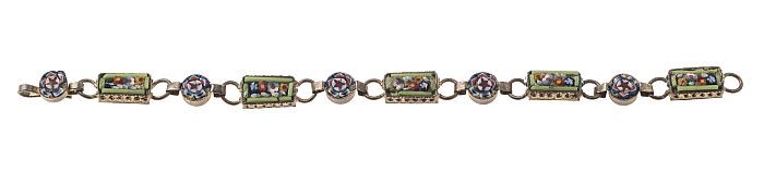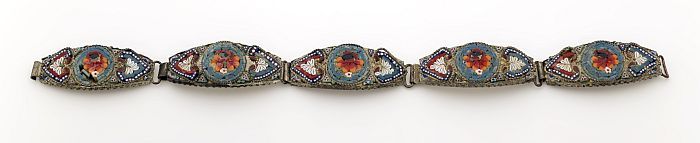 Zilverkleurige armband bestaande uit vijf schakels, ...