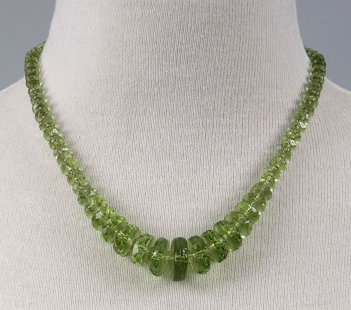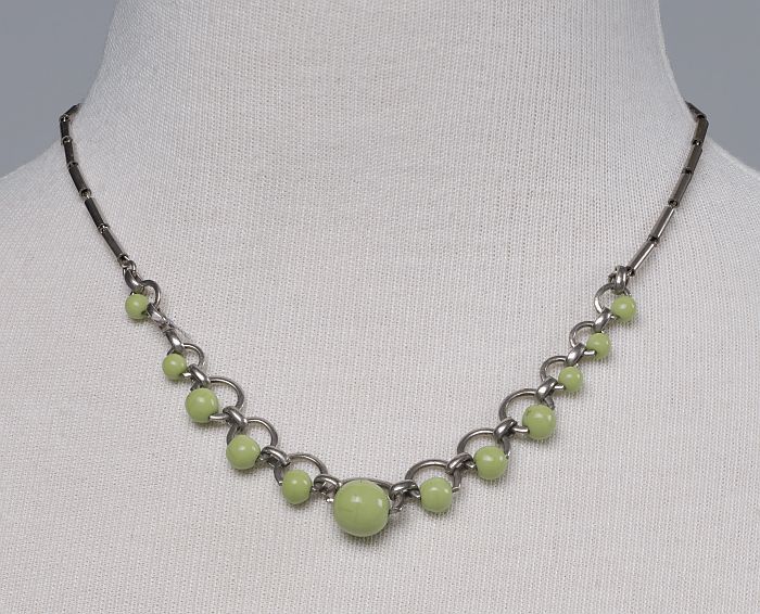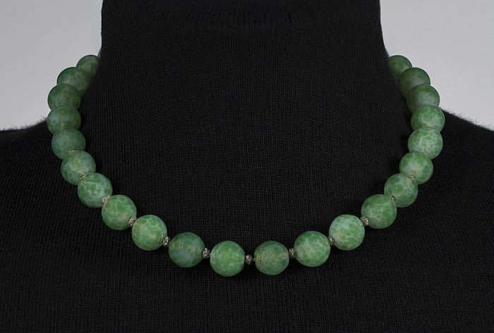 Halskettinkje met ronde lichtgroene kralen en langwe...