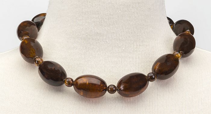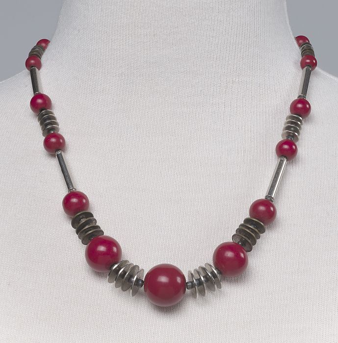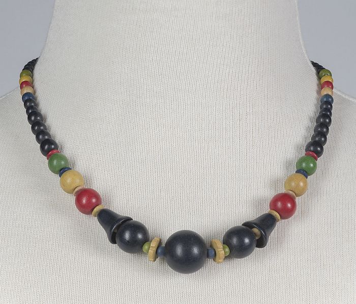 Damesketting met houten en metalen kralen