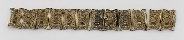 Armband met goudkleurige metalen schakels met filigrein