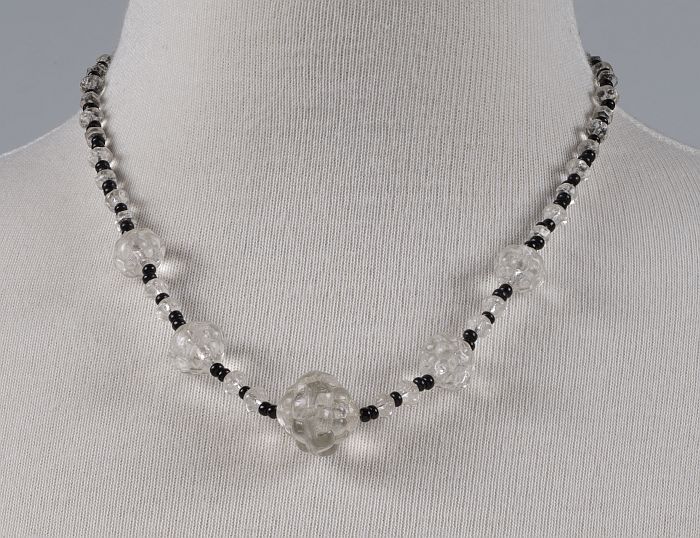 Kralensnoer van transparante en zwarte glaskralen me...