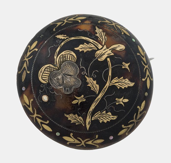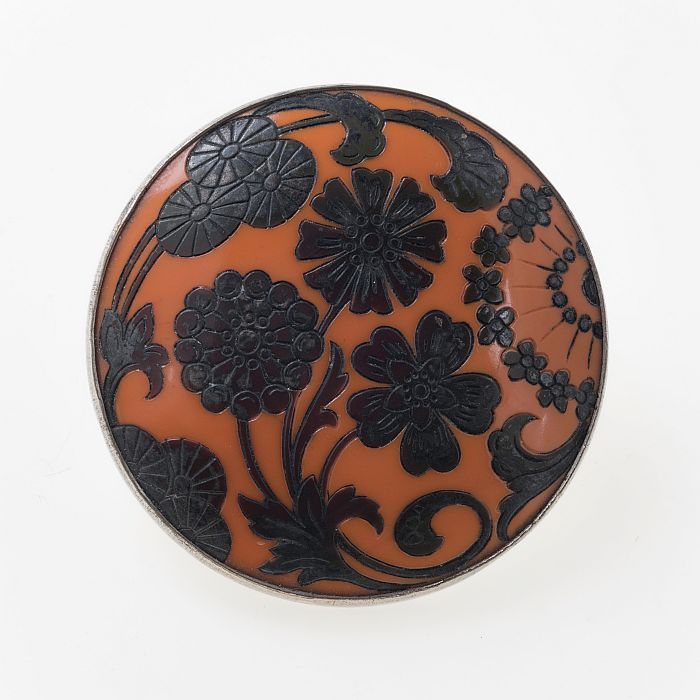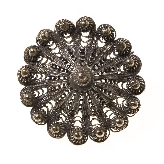 Ronde zilverkleurige metalen broche met filigrein