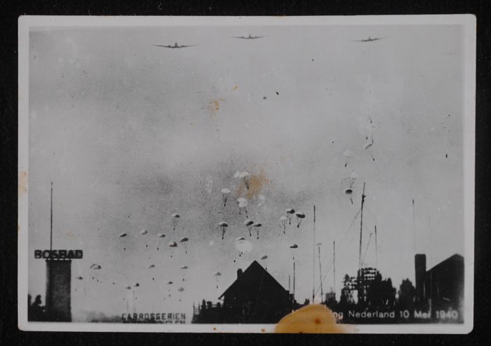 Foto Tweede Wereldoorlog, Ypenburg, Duitse parachuti...