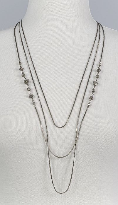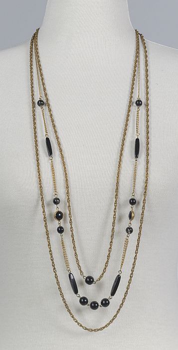Metalen ketting met zwarte glazen kralen