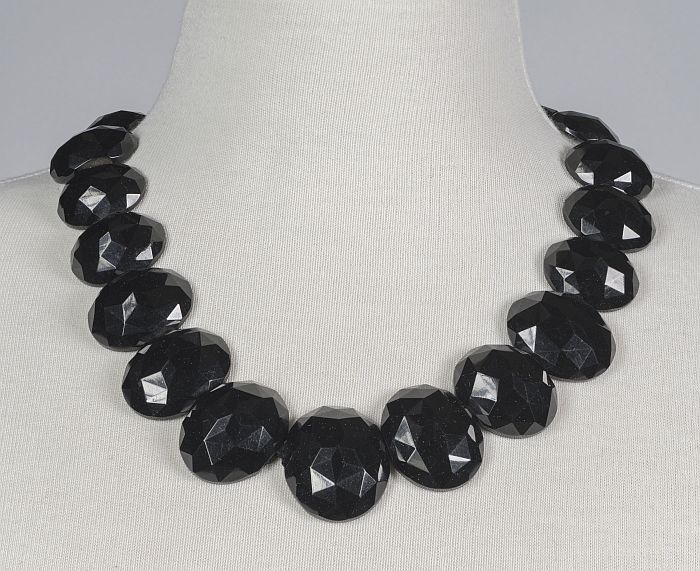 Ketting van zwarte kunststof kralen