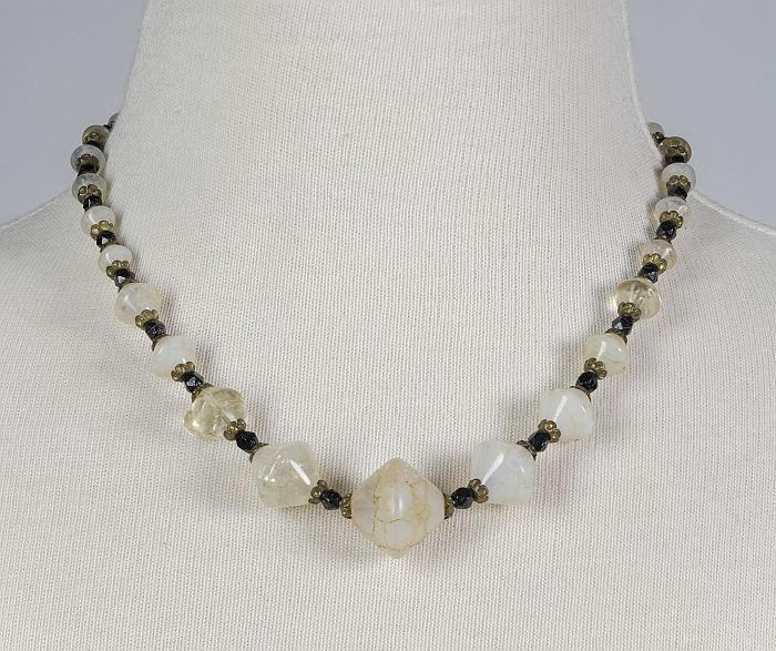Halssnoer van zwarte, transparante en opaak witte gl...