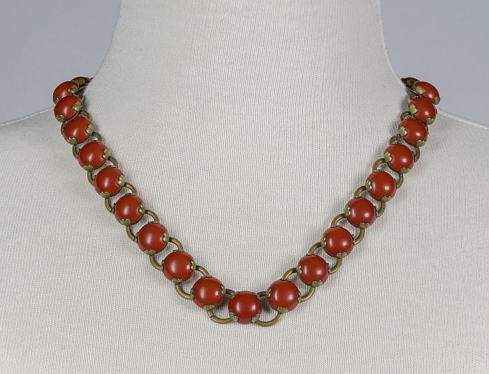 Halsketting met koperen schakels ingelegd met ronde ...