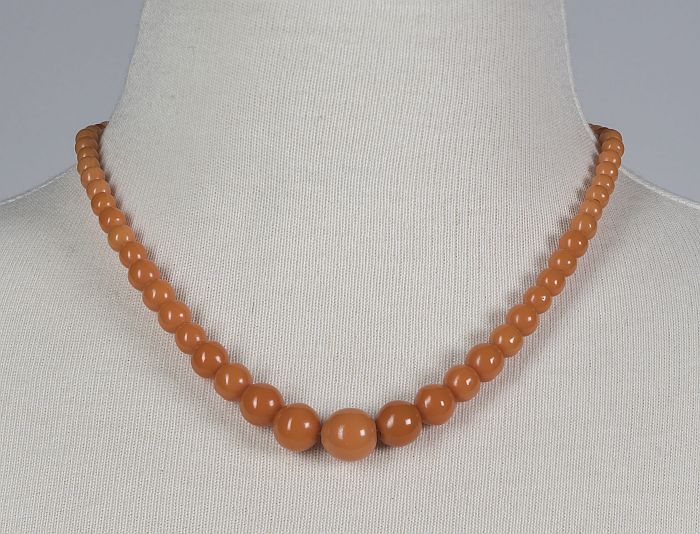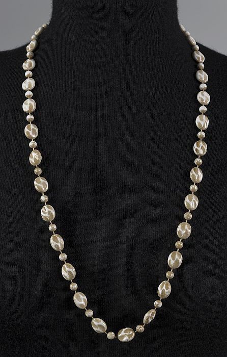 Halssnoer van kleine goudkleurige kraaltjes en grote...