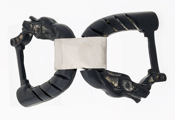 Zilverkleurige metalen armband, buitenzijde donkergr...