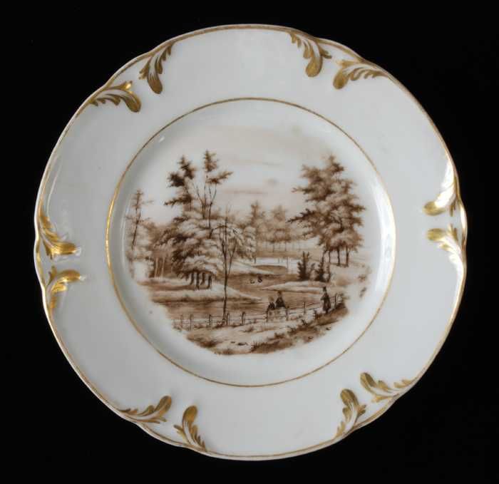 Wit bord met goudkleurig bladmotief langs rand en pa...