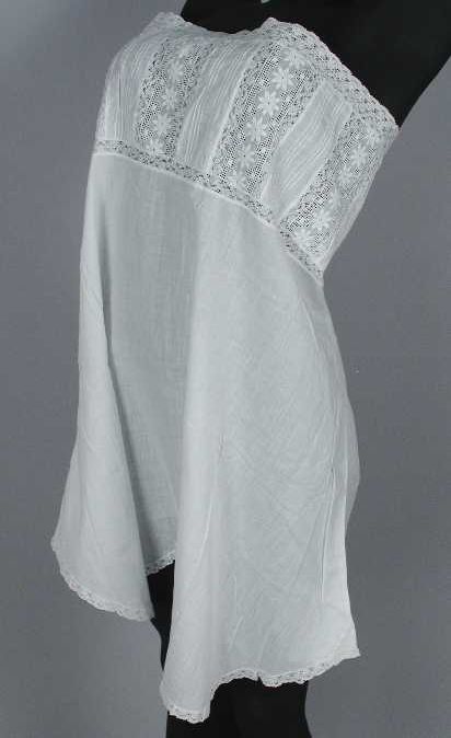 Wit hemd, bovenrand met kant en broderie zonder band...