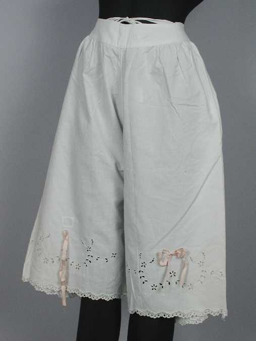 Witte onderbroek met pijpen afgezet met broderie