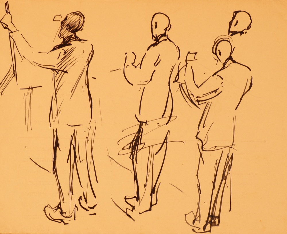 Man aan schildersezel