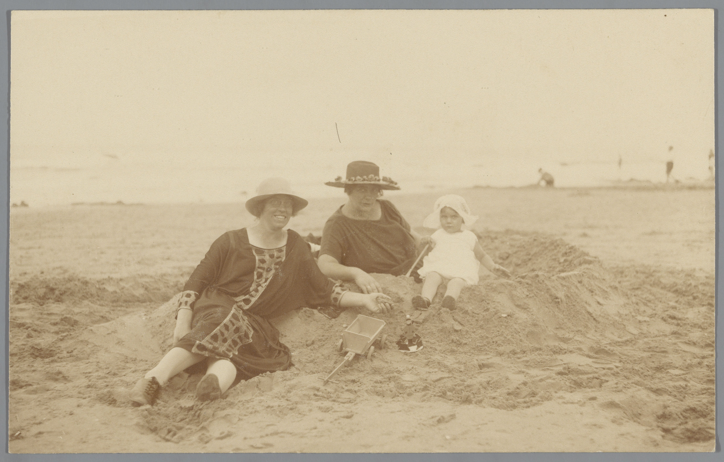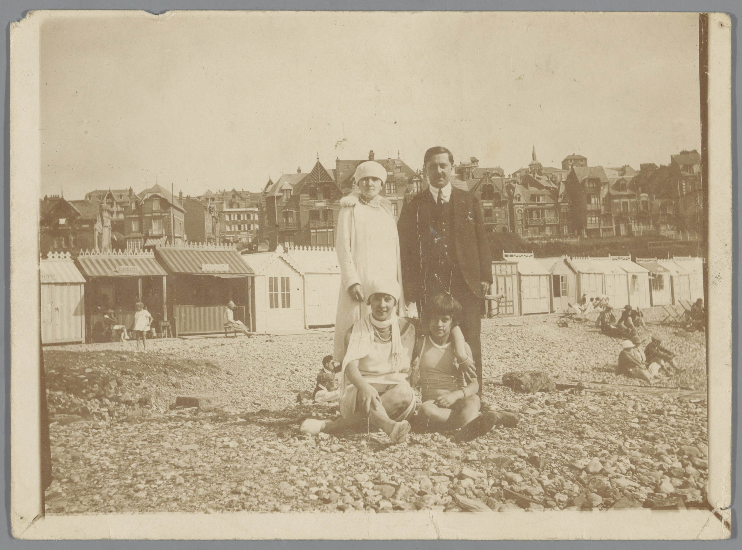 Groepsportret van twee onbekende vrouwen en drie kin...