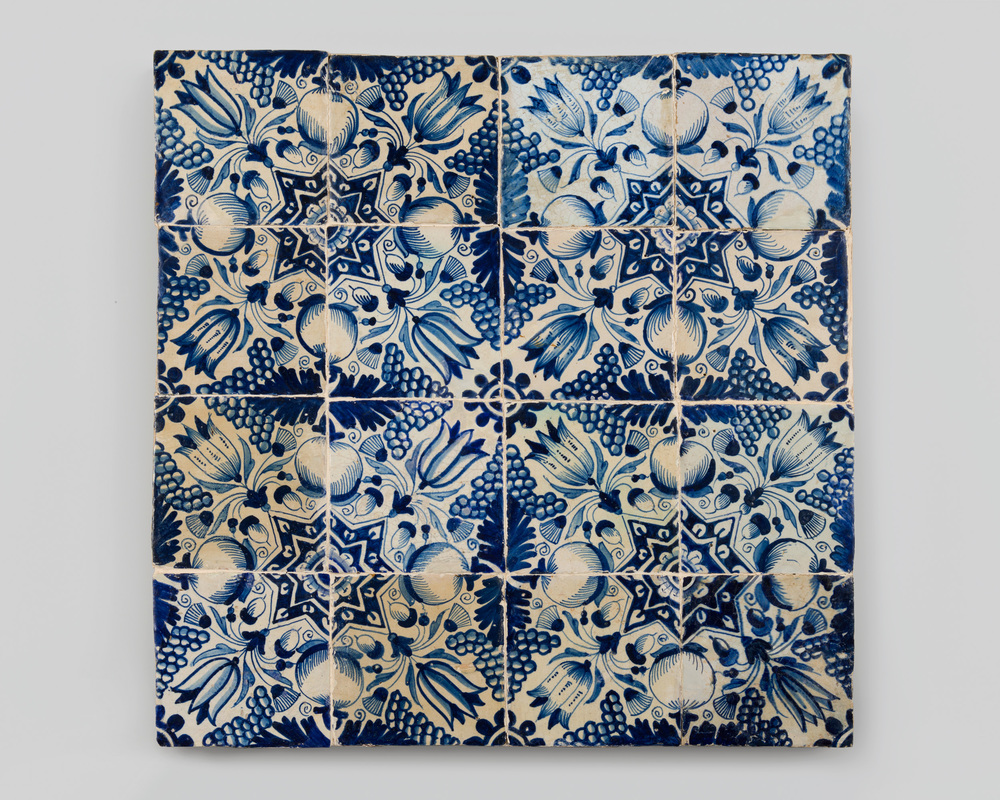 tegel van aardewerk met tinglazuur, voorstellende: o...