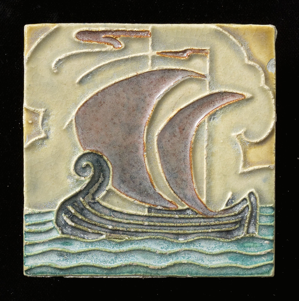 Tegel in cloisonné-techniek, met voorstelling: Fanta...