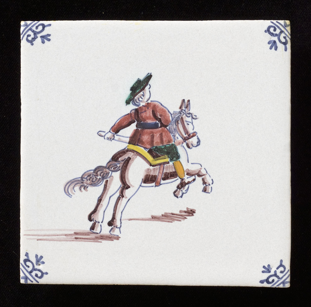 Tegel, geschilderd op biscuit, voorstellende ruiter,...