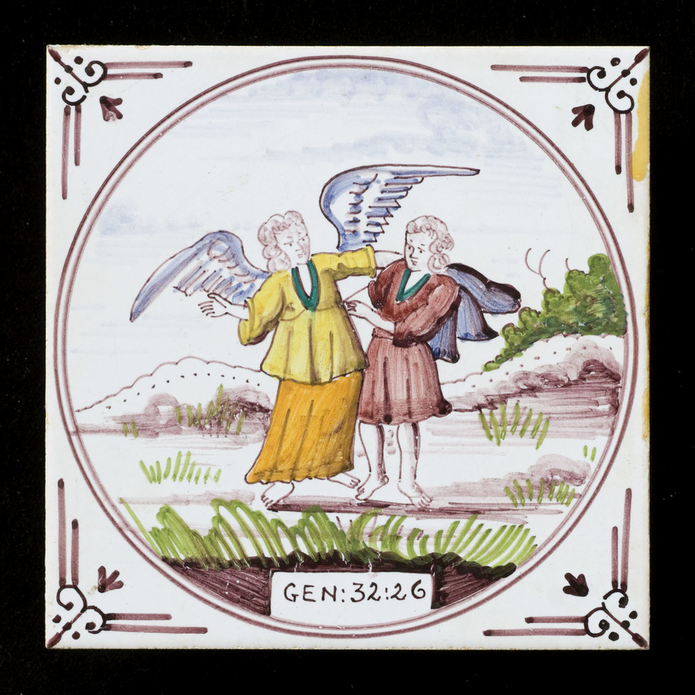 Tegel van keramiek met tinglazuur, voorstellende: Ja...