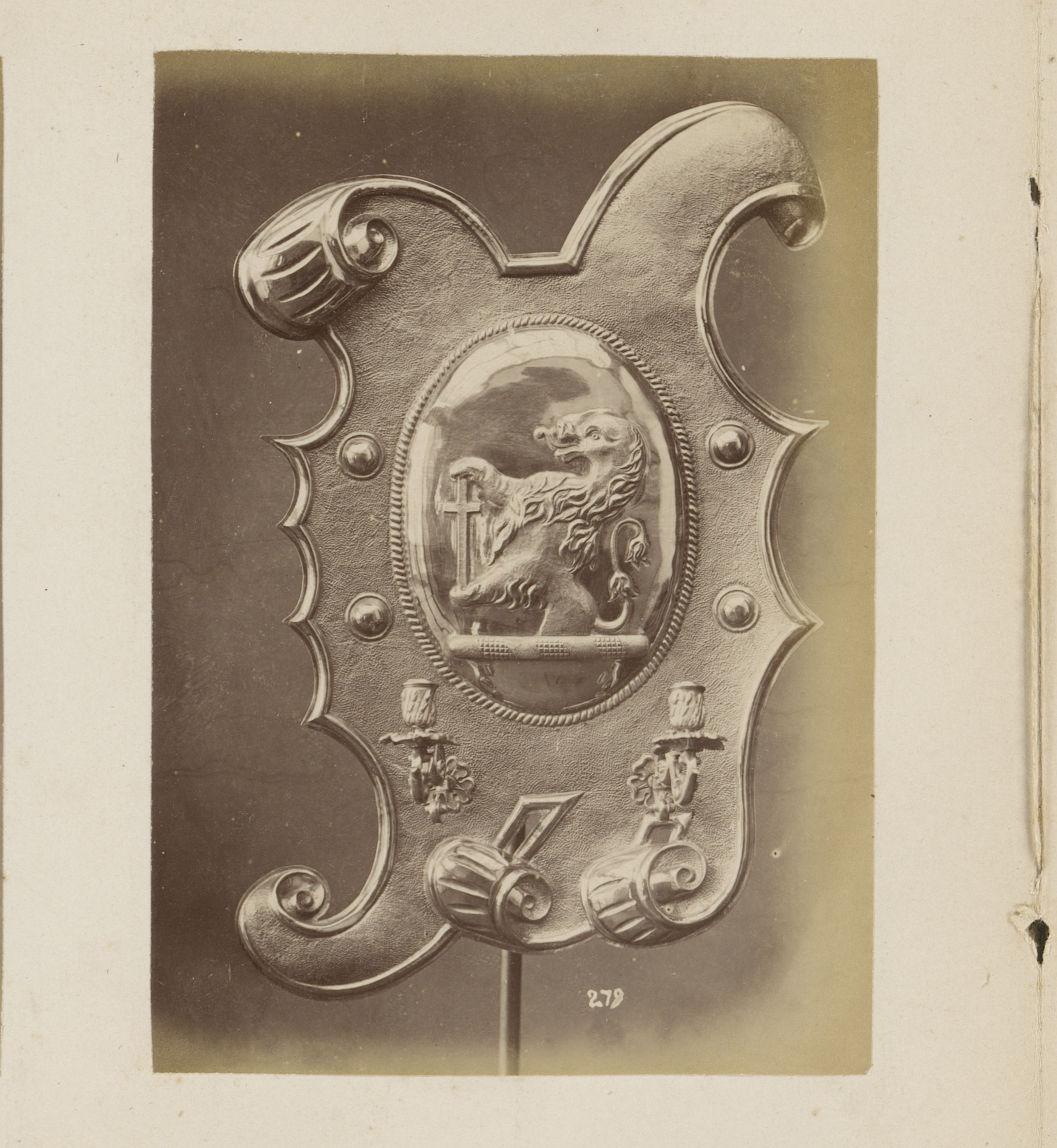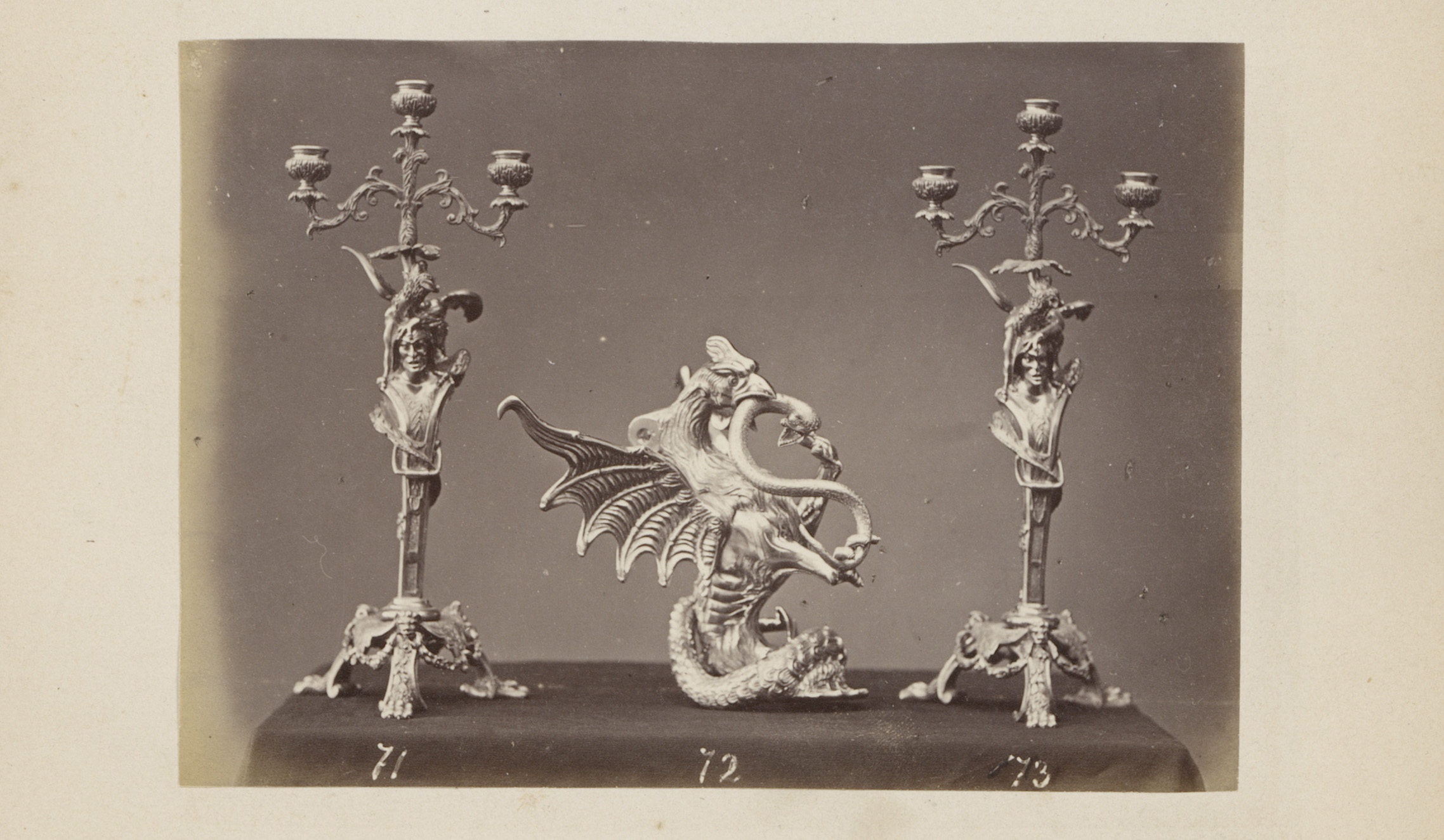 Metalen kandelaars in de vorm van griffioenen en leeuw
