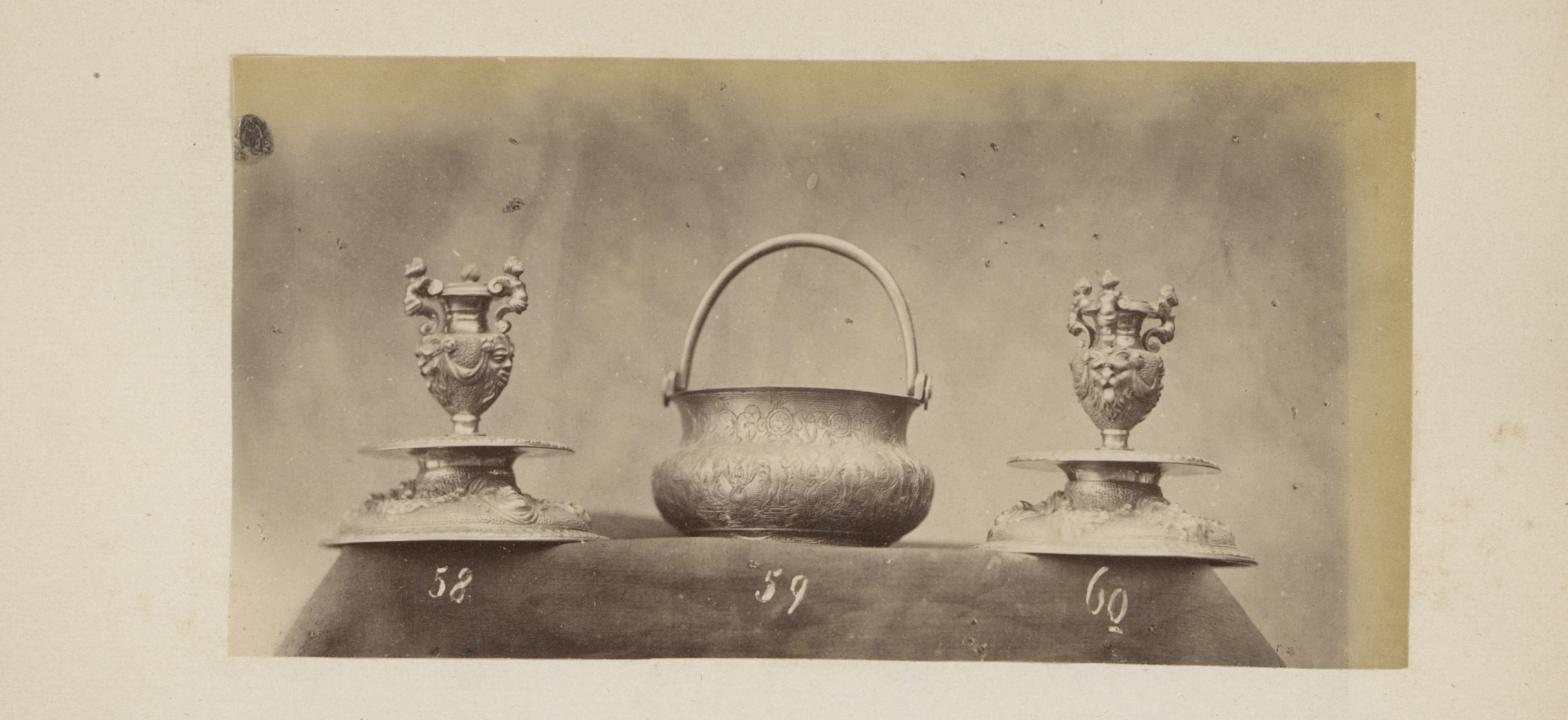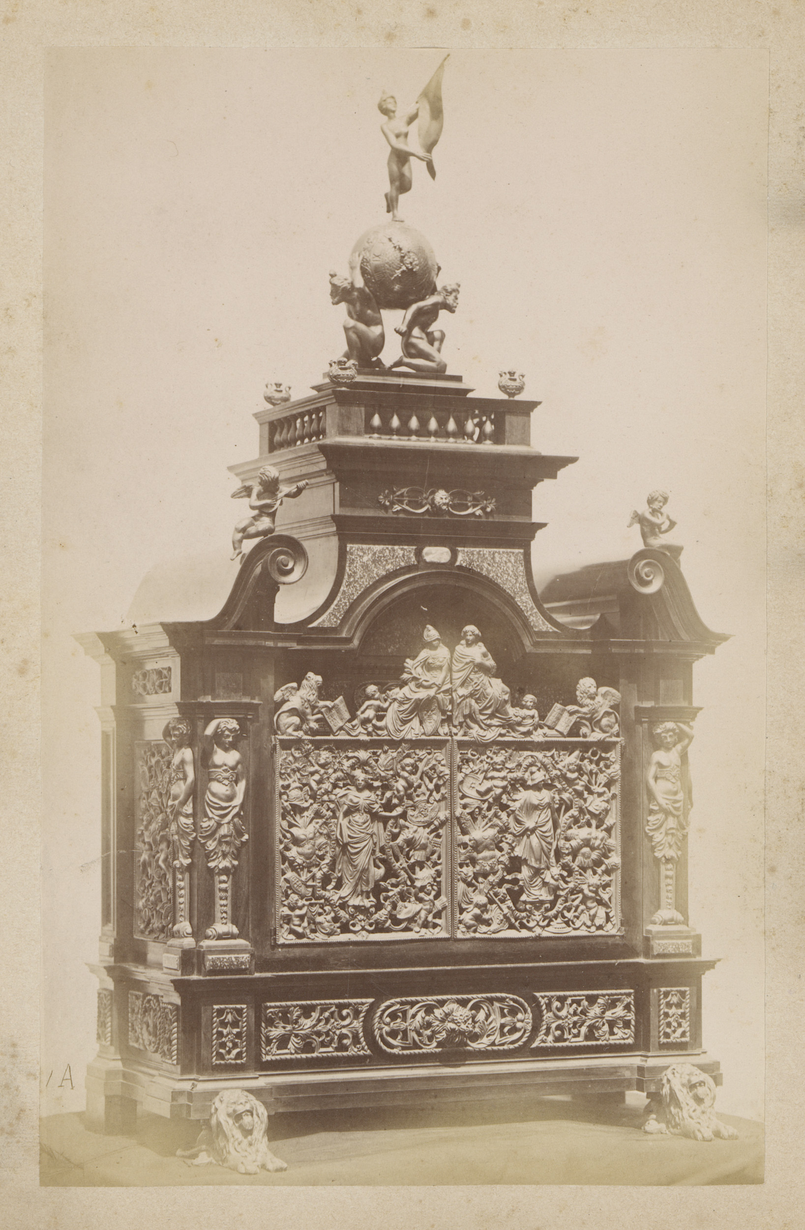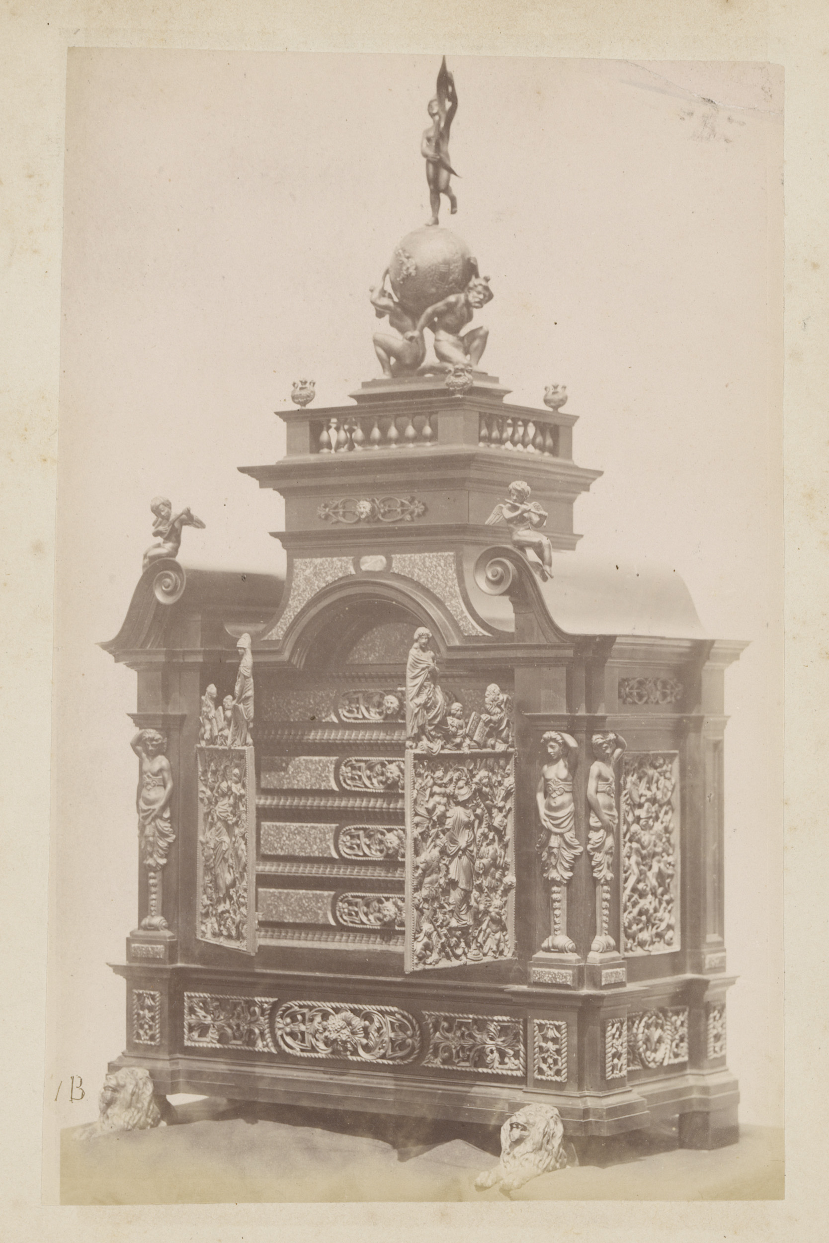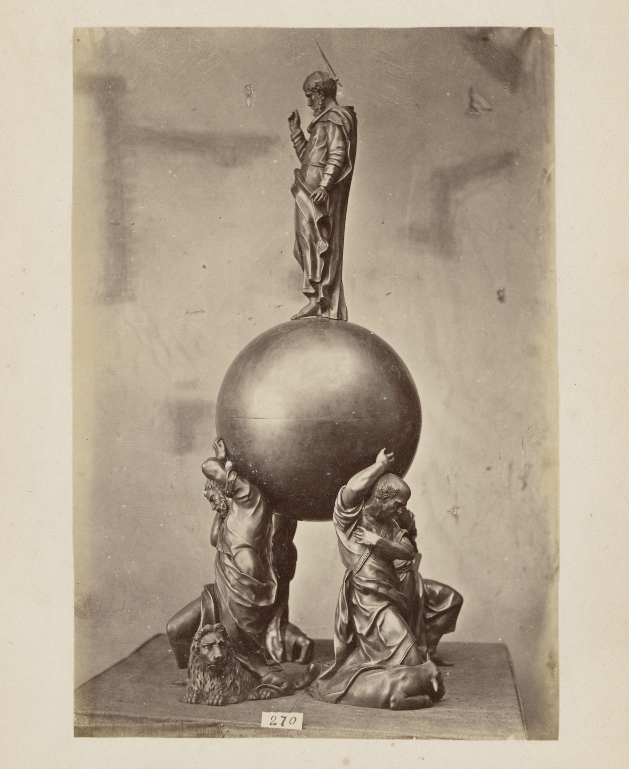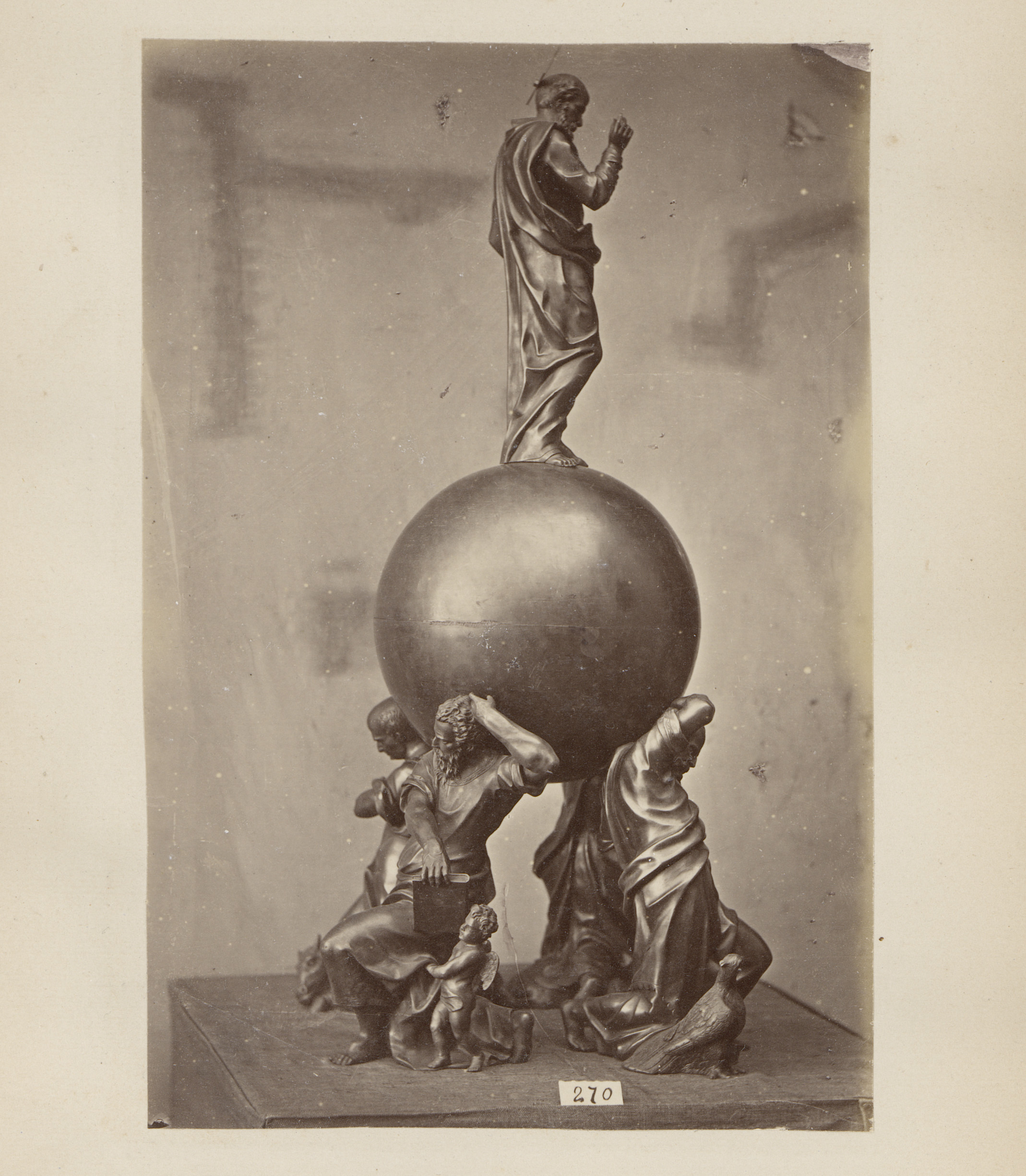 Metalen vat gedragen en bekroond door figuren