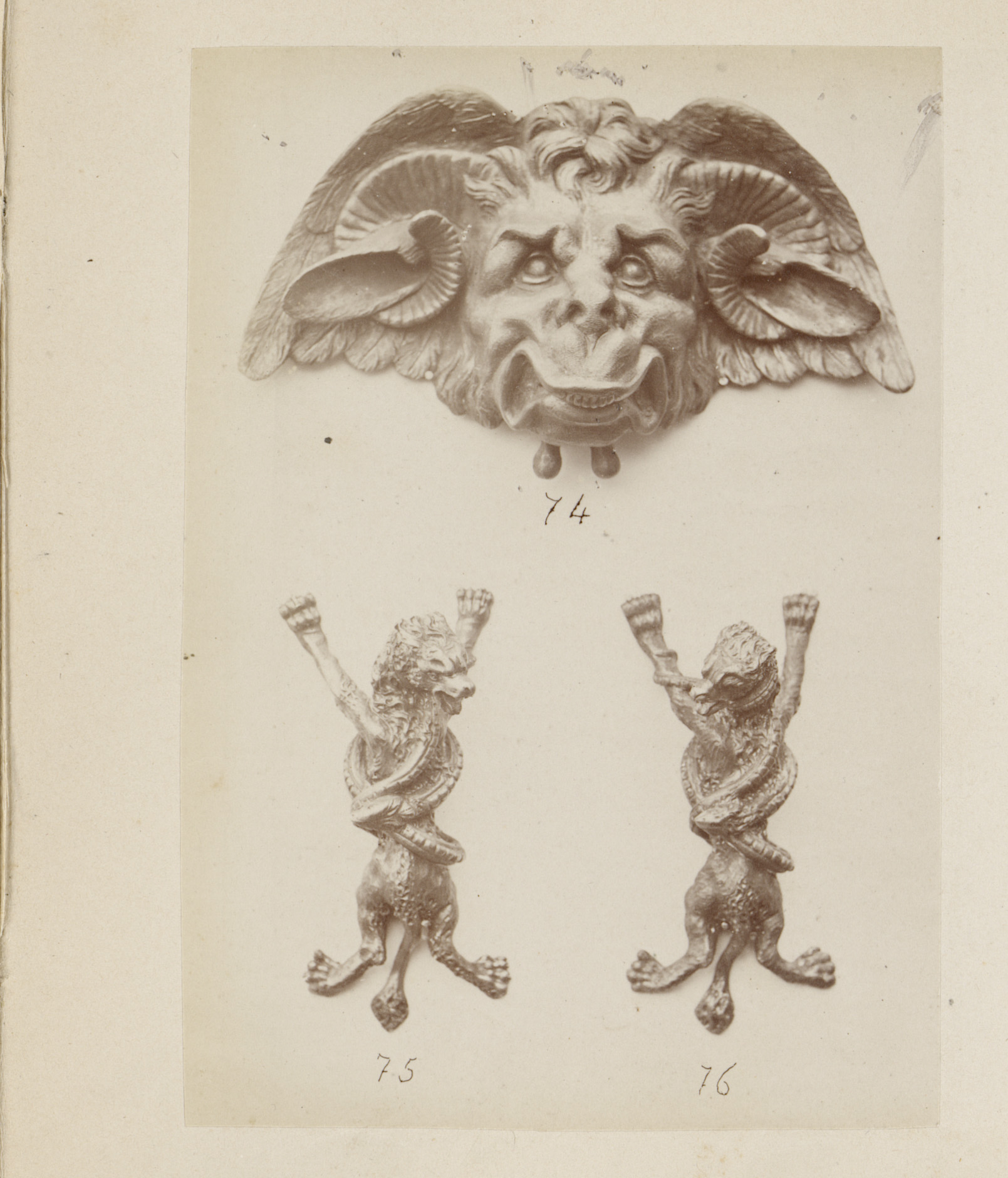 Metalen ornamenten in de vorm van leeuwen- en mensen...