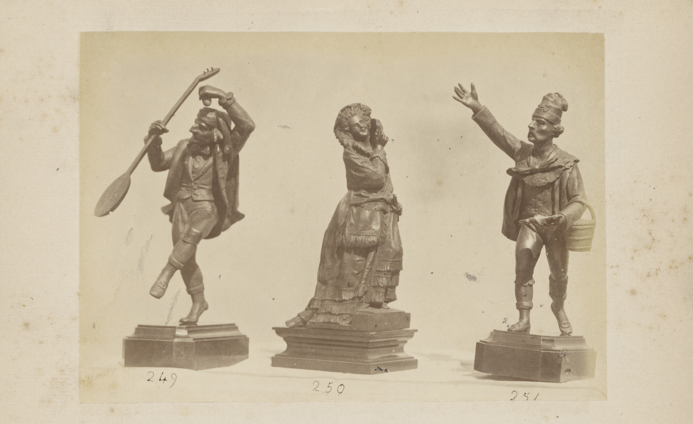 Metalen sculpturen van figuren in kostuum voor het C...