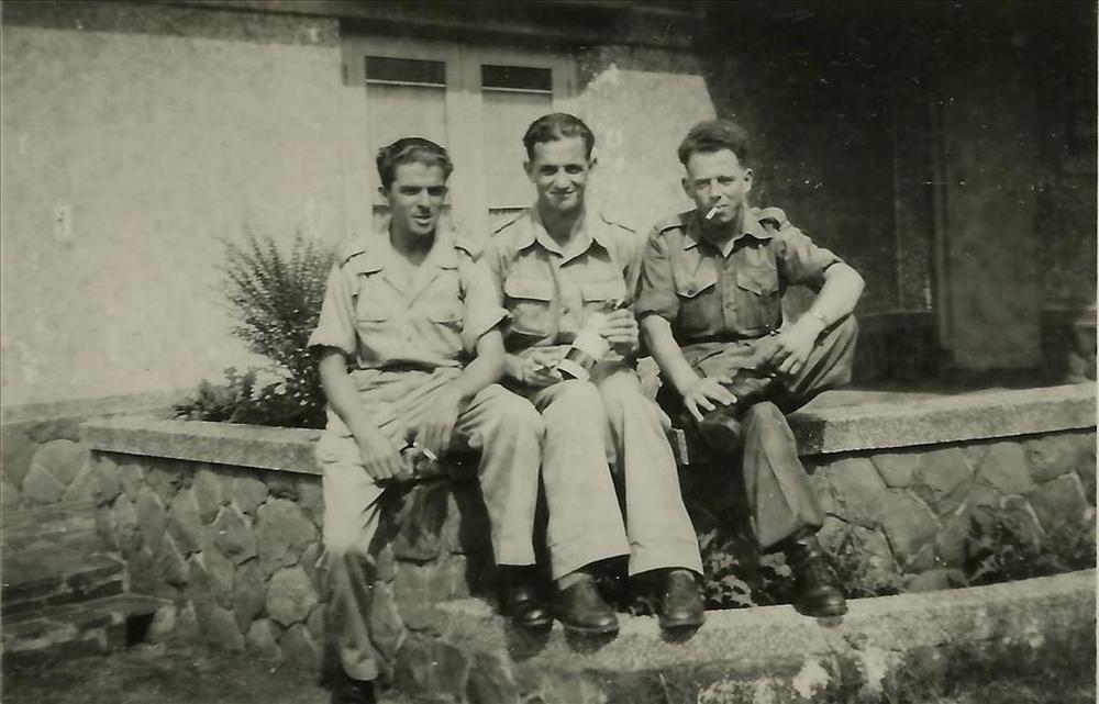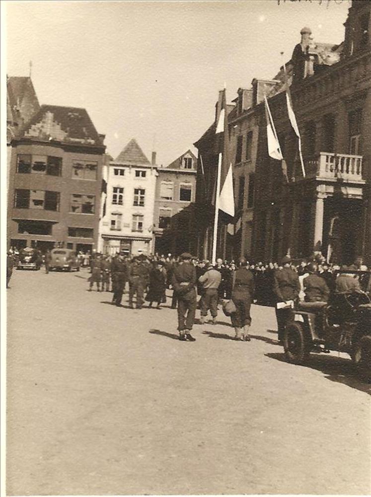 5 Engelse soldaten voor tank, waarschijnlijk Nijmegen