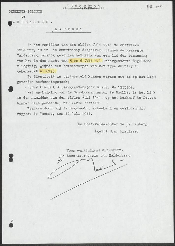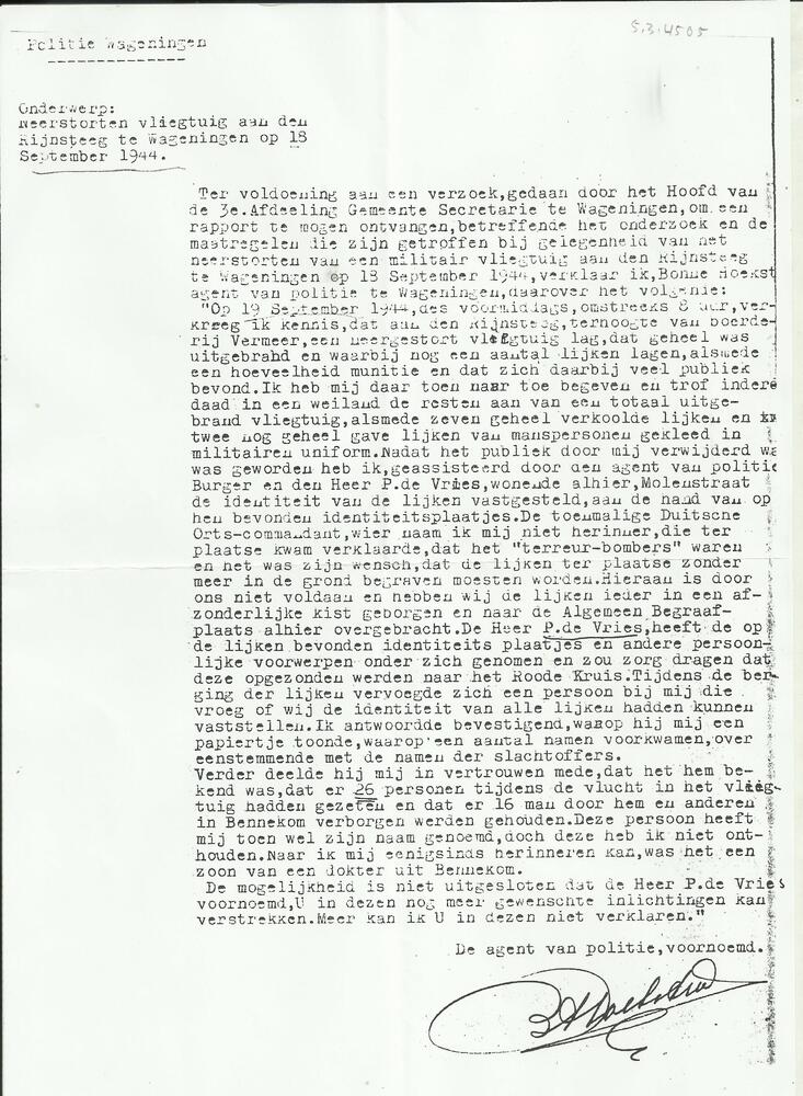 Kopie rapport van het neerstorten van een vliegtuig ...