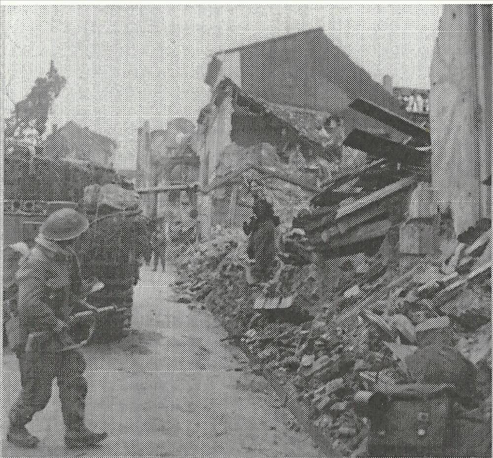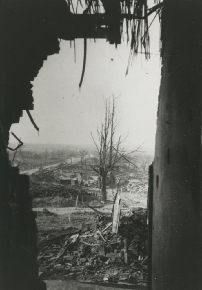 Britse soldaat met Churchill tank in ruines Kleef - ...