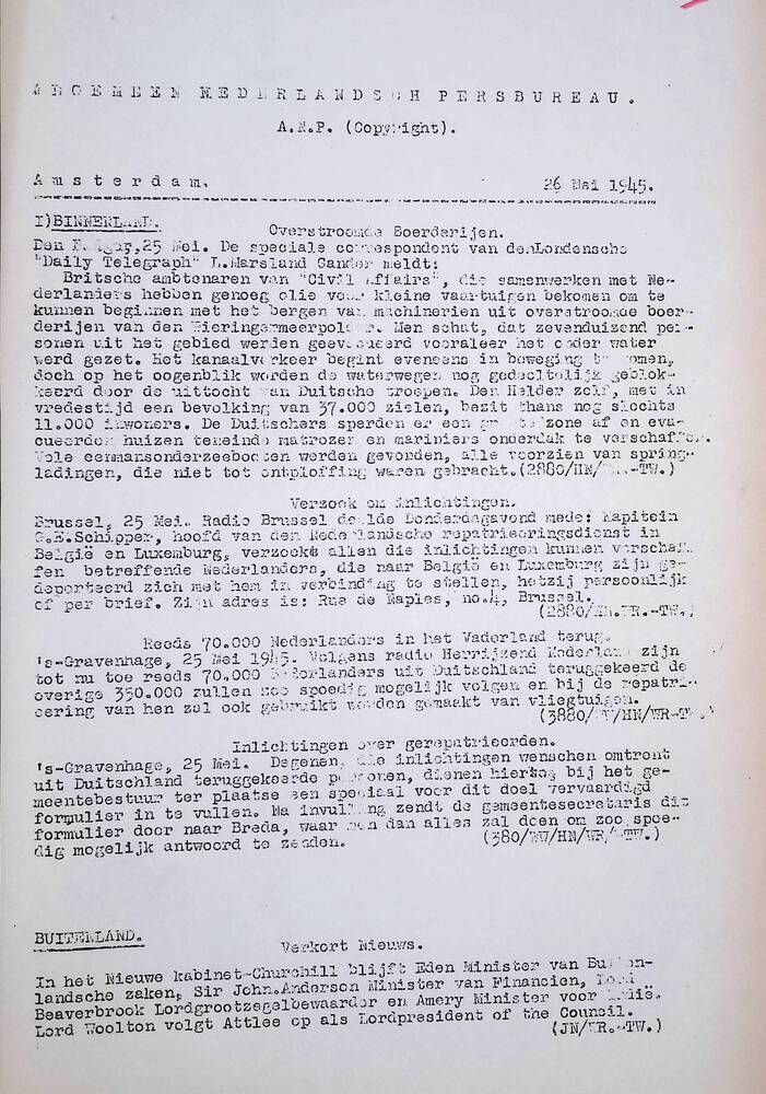 Algemeen Nederlandsch Persbureau, mededelingen, kant...